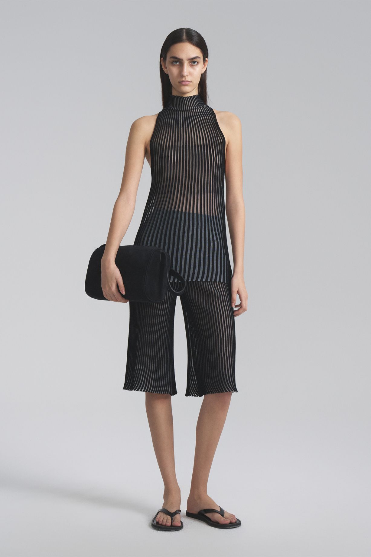 Бермуды из невесомой премиальной итальянской пряжи прямого кроя с поясом. Связаны из двух видов пряжи - более плотная в зоне бедер и расширение книзу.Состав: 61% вискоза, 30% нейлон, 9% эластан
