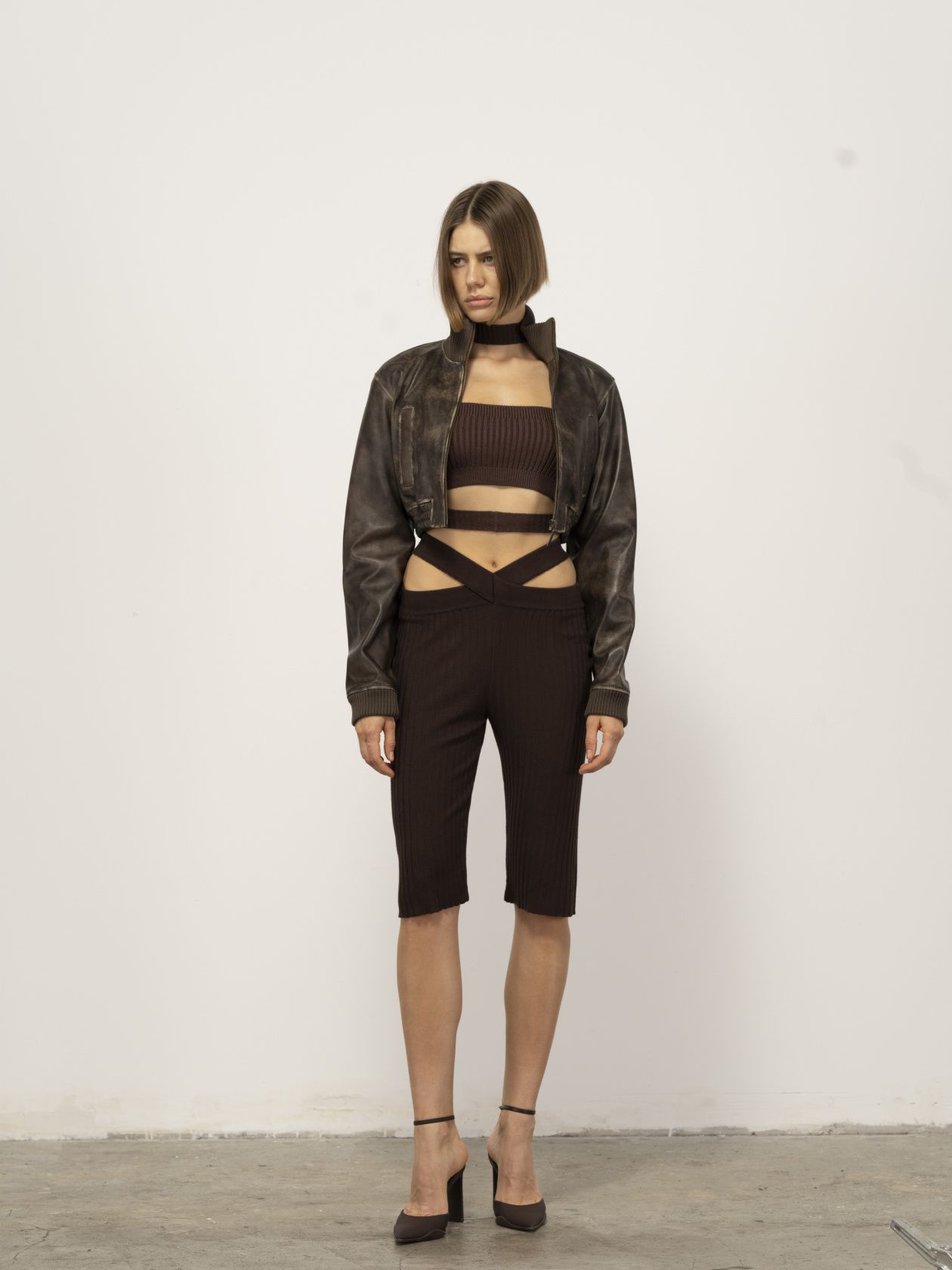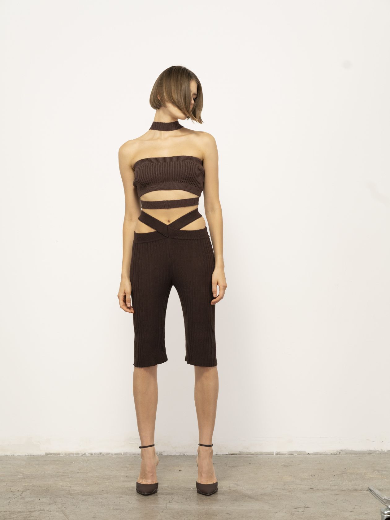 Удлиненные шорты с Х-образным поясом подчеркивающим талию.Состав: 100% вискоза