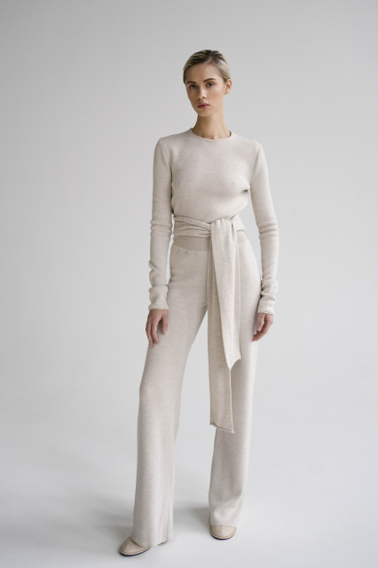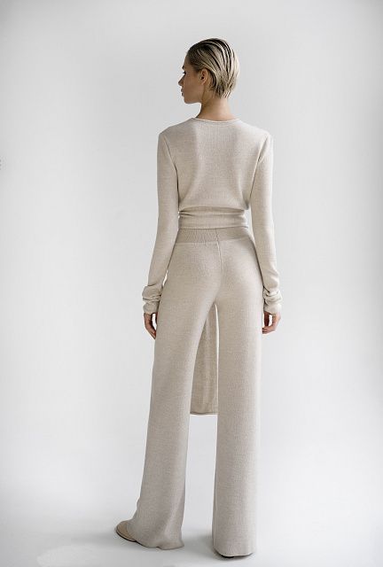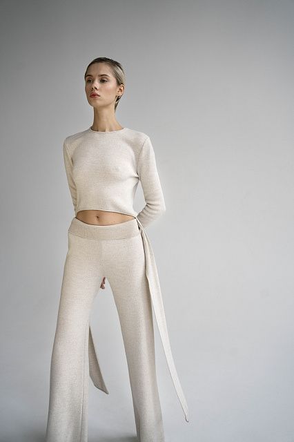 Бесшовные трикотажные брюки свободного кроя из шерсти австралийского мериноса с широким удобным поясом.Состав: 60% шерсть австралийского мериноса, 40% вискоза