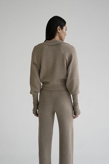 Бесшовные трикотажные брюки свободной кроя из шерсти австралийского мериноса с удобным поясом.Состав: 60% шерсть австралийского мериноса, 40% вискоза