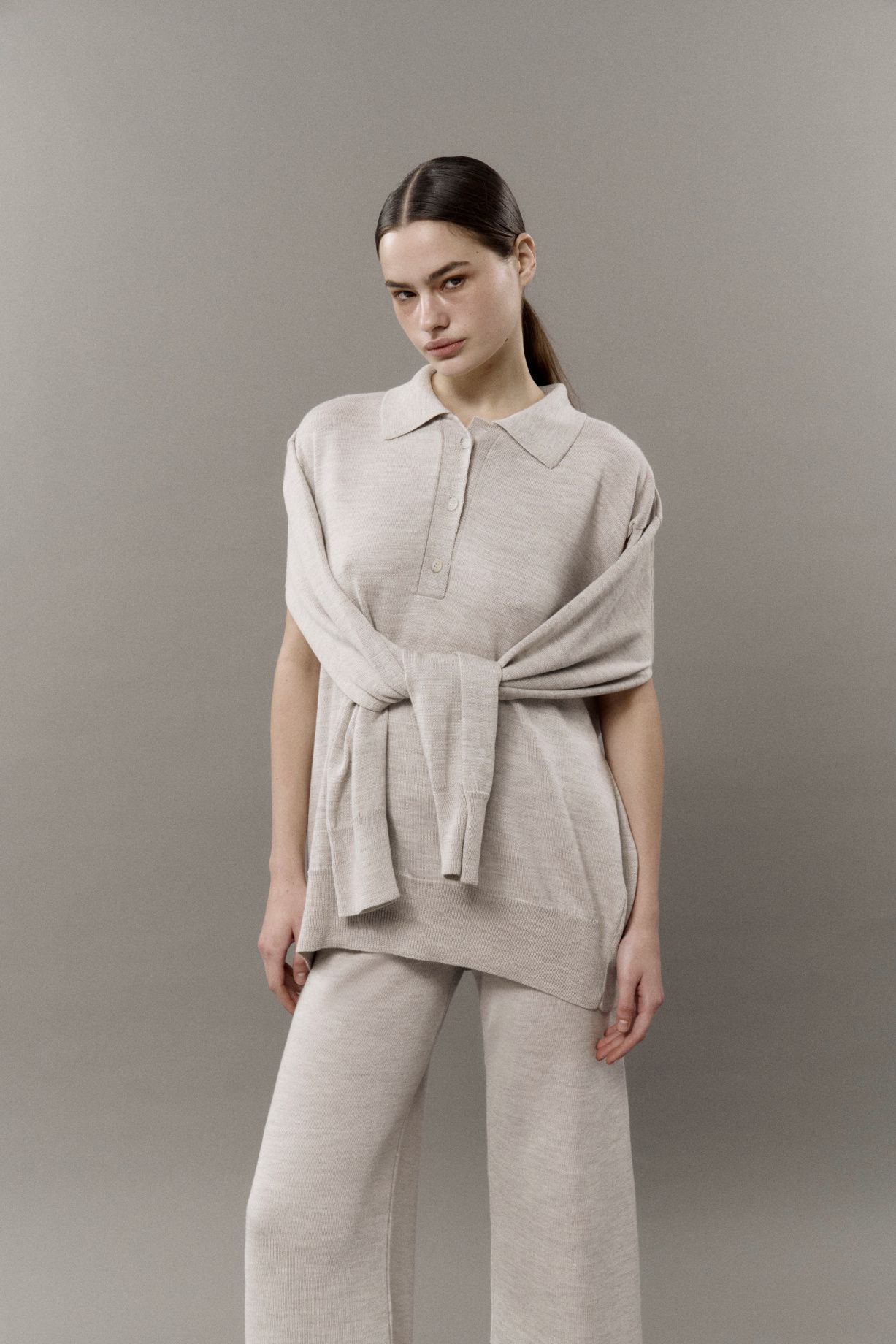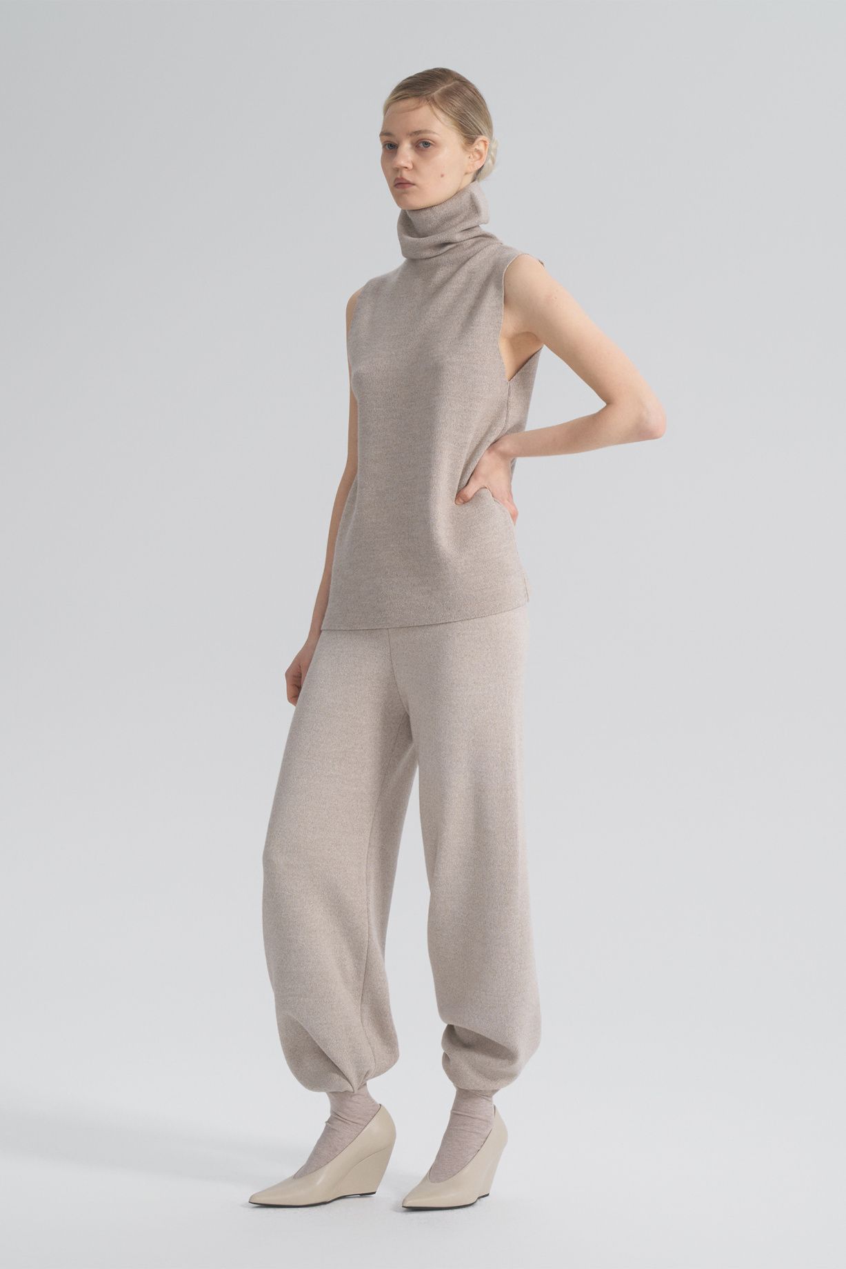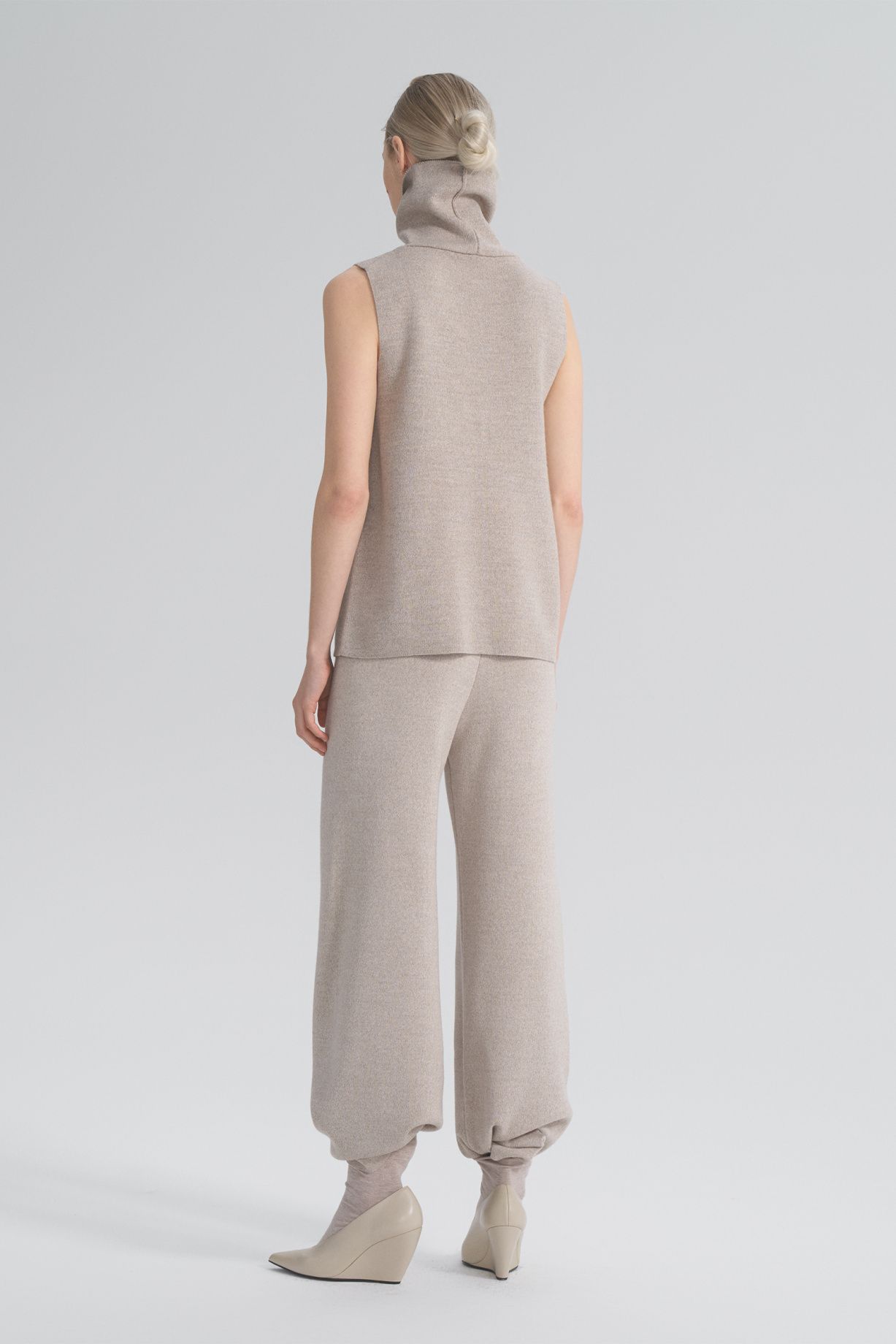 Бесшовные трикотажные брюки свободной кроя из шерсти австралийского мериноса с удобным поясом.Состав: 60% шерсть австралийского мериноса, 40% вискоза