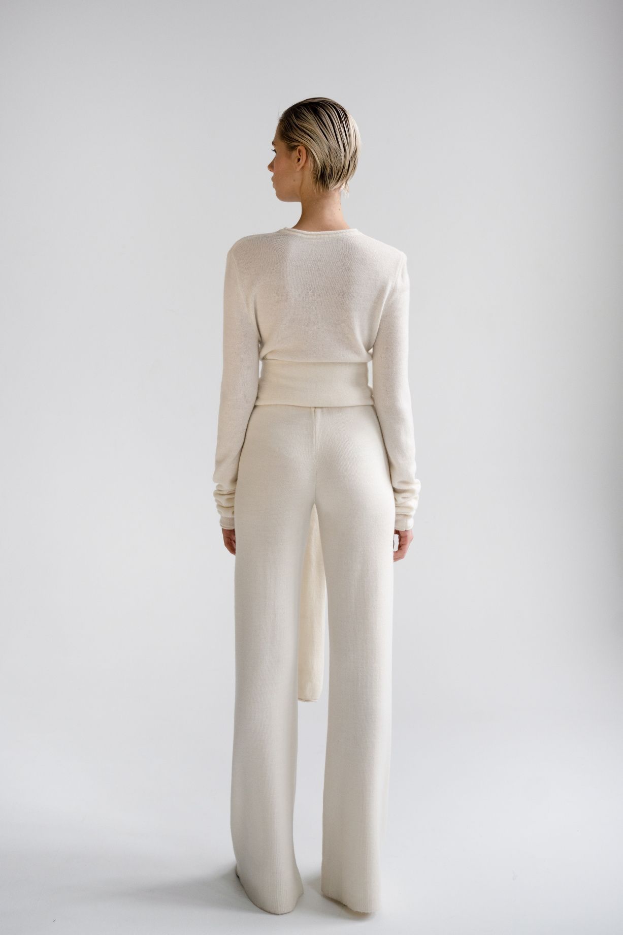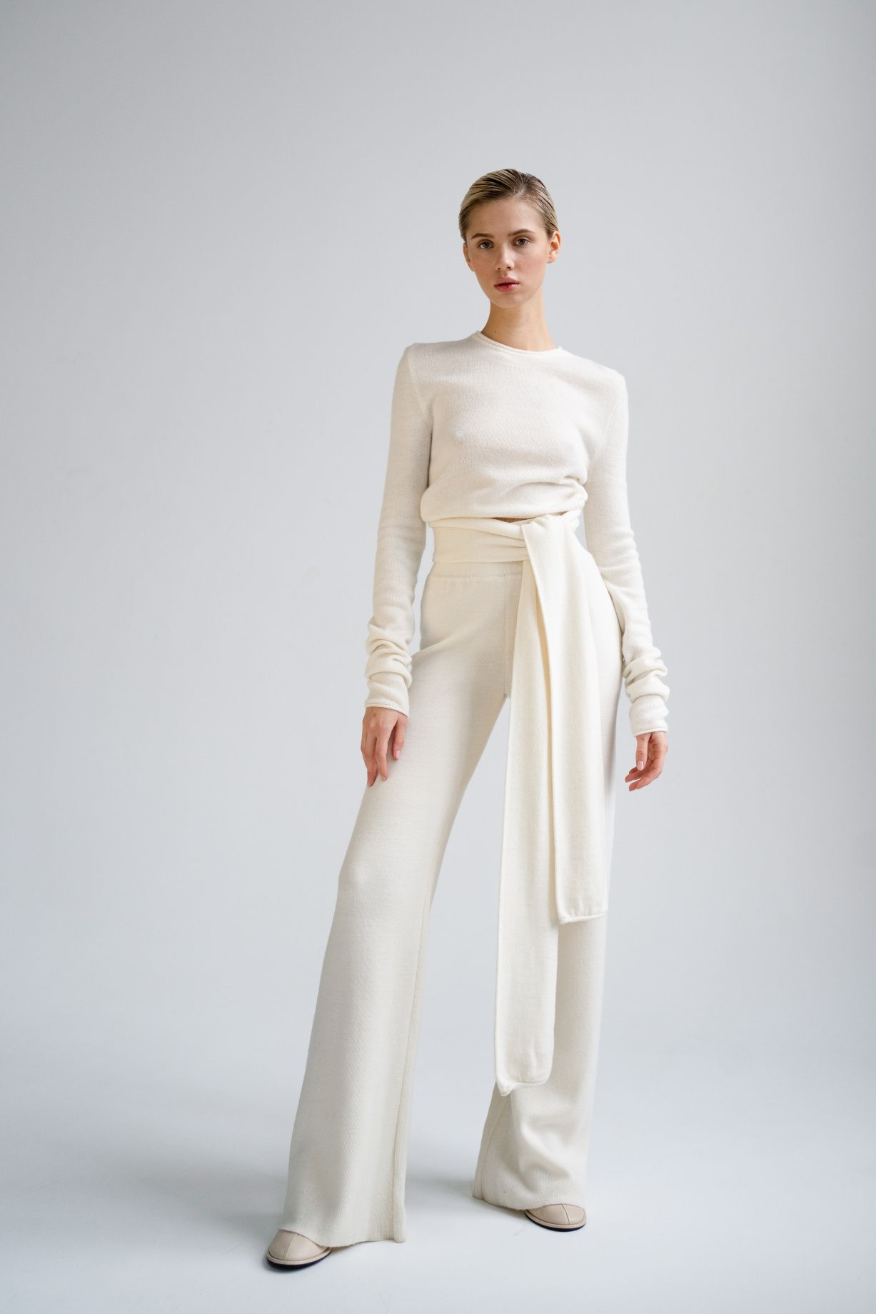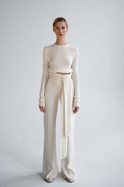 Бесшовные трикотажные брюки свободной кроя из шерсти австралийского мериноса с удобным поясом.Состав: 60% шерсть австралийского мериноса, 40% вискоза
