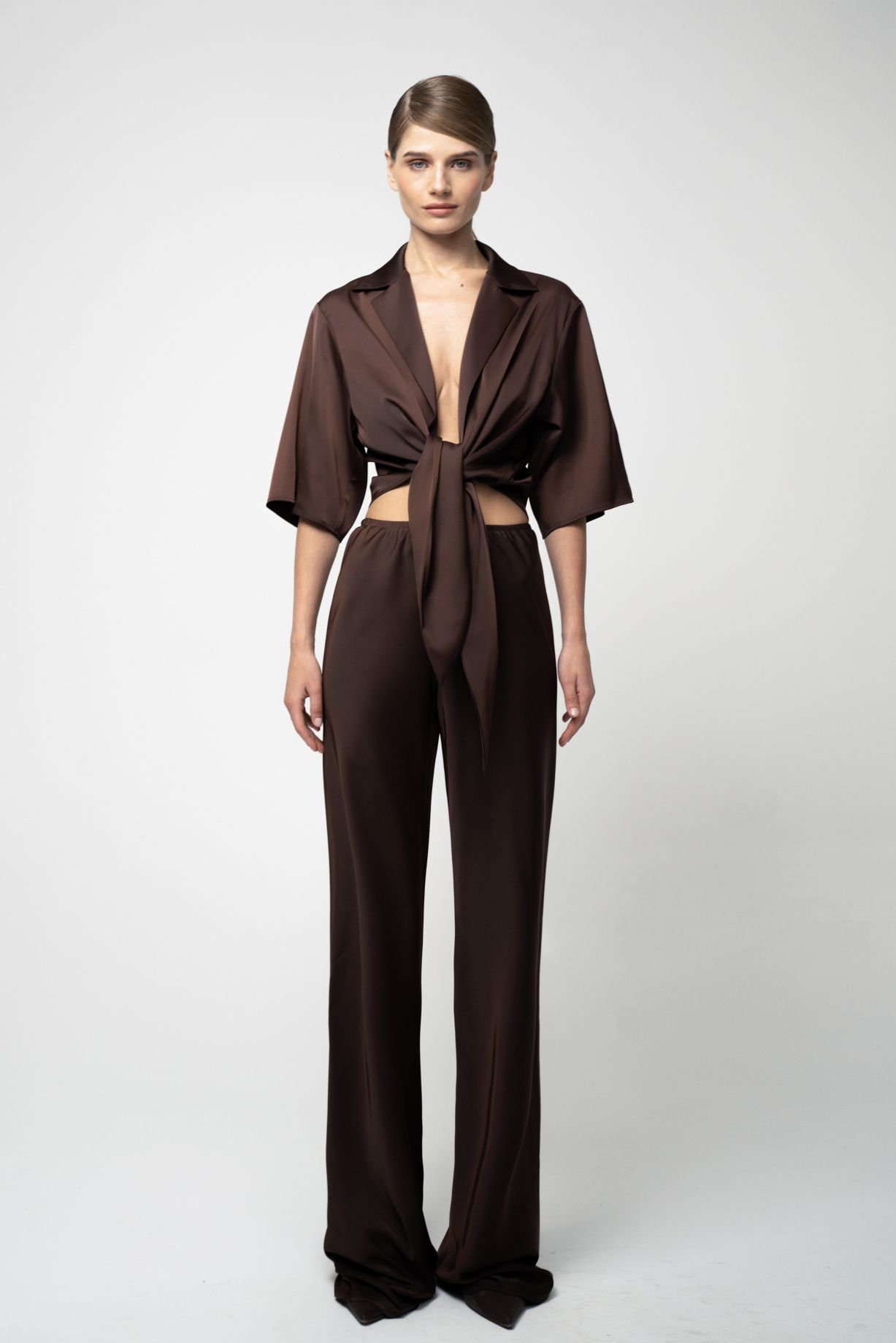 Тяжелая струящаяся ткань создает мягкие и плавные линии, а брюки, скроенные по косой, обеспечивают идеальную посадку и комфорт в движении, широкий крой и удобный пояс на резинке.Состав: 70% вискоза, 30% шелк