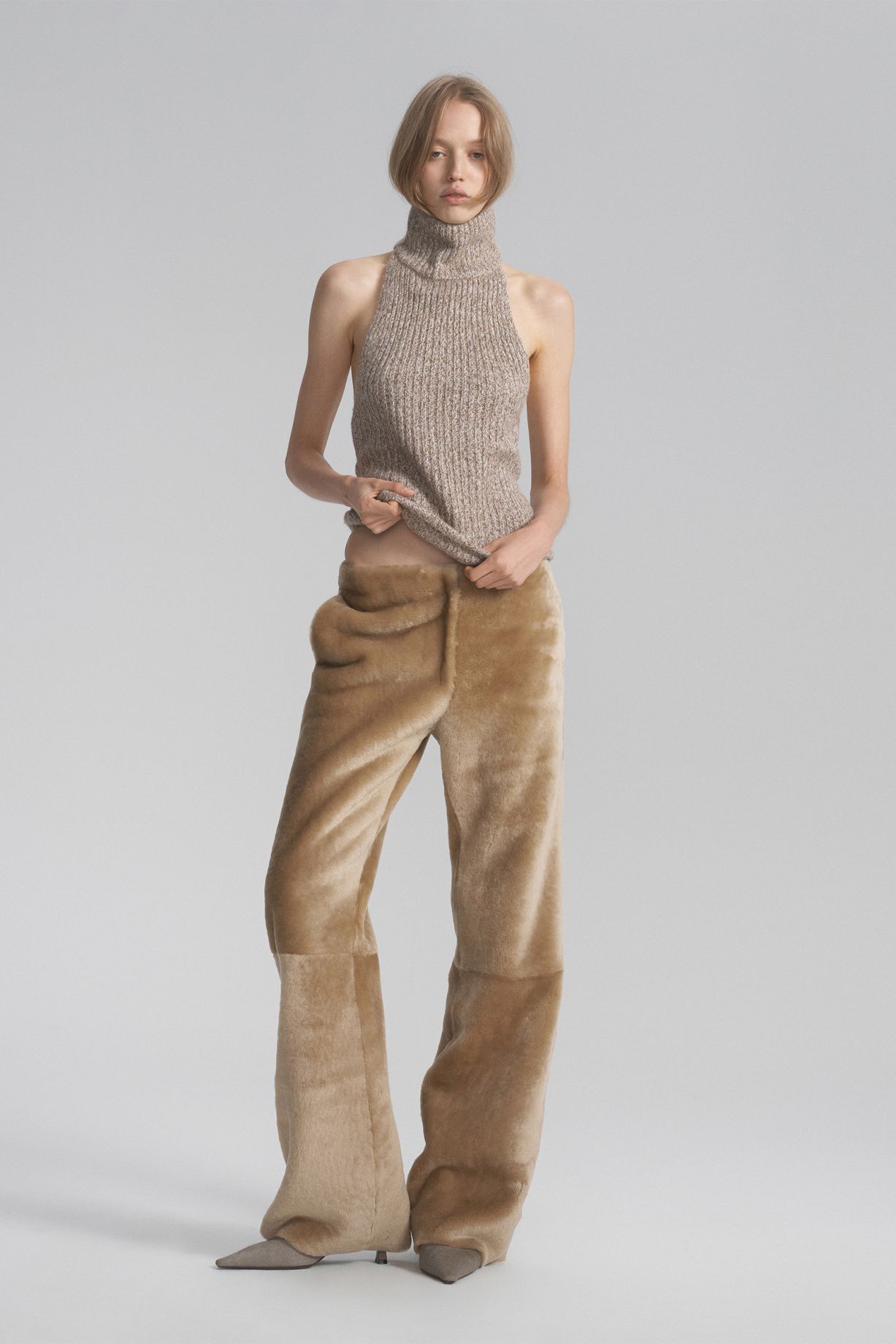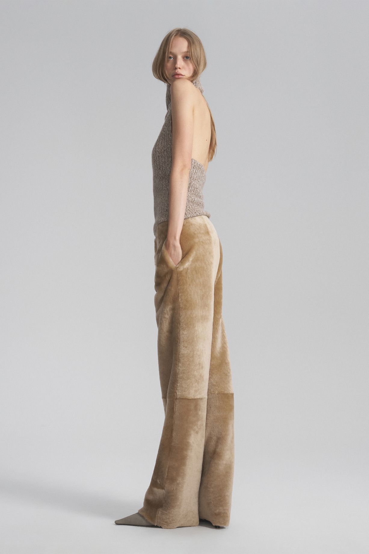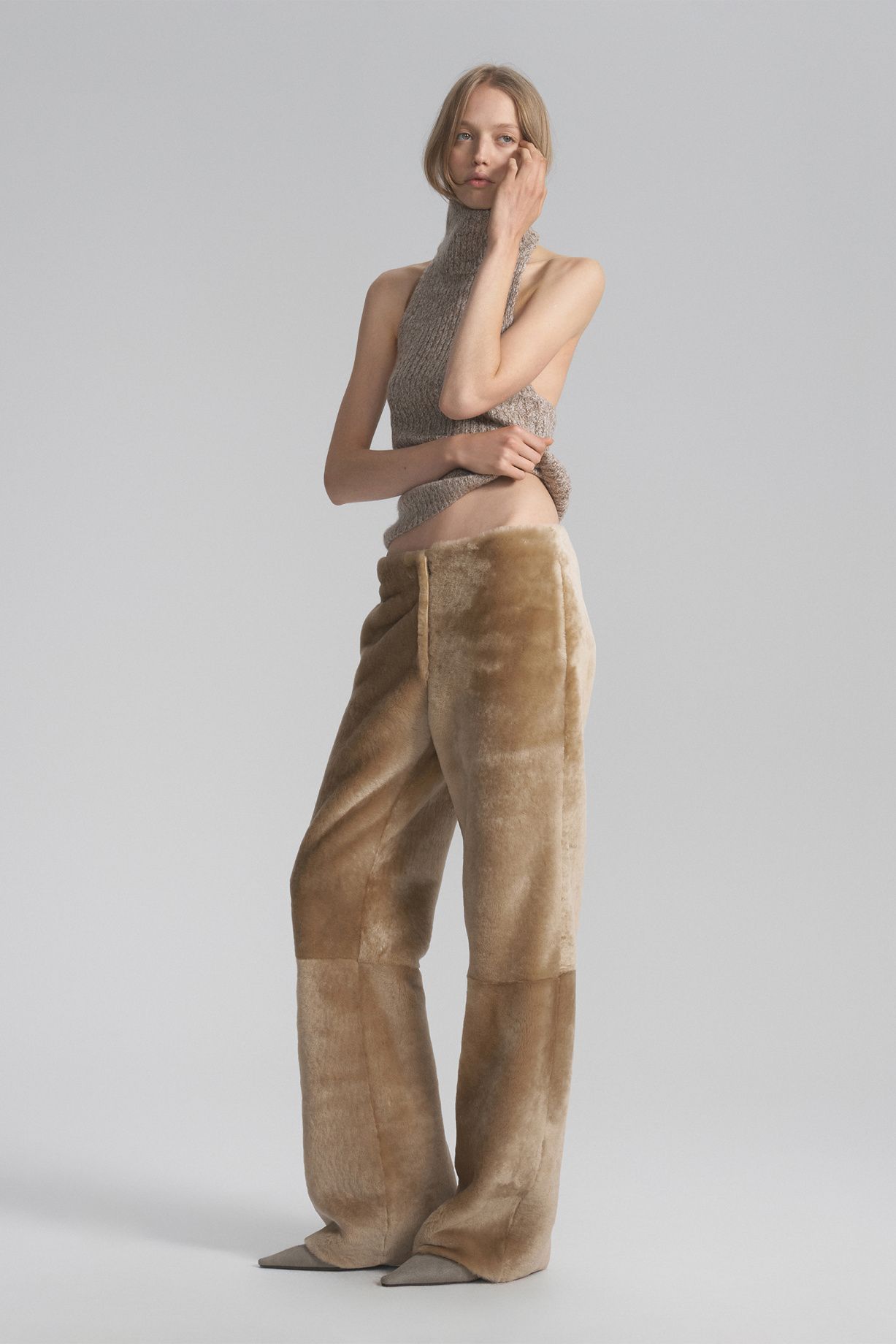 Зимние брюки из мягкого шелковистого меха натуральной овчины. Мех изделия обладает нежной, слегка шелковистой текстурой и бархатистой мягкостью. Внутренняя часть брюк выполнена из премиальной замши. Пояс расположен по линии талии, повторяет контуры фигуры и обеспечивает комфортную посадку. Застёжка спереди на молнию. Боковые карманы в швах с двух сторон.