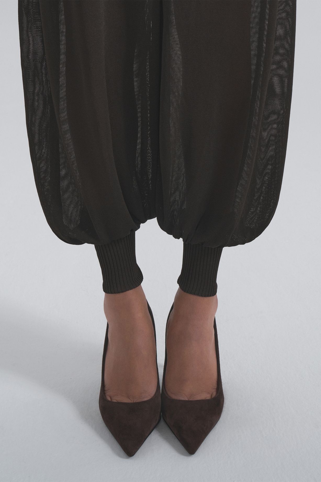 Брюки - шаровары со сборками из шелковой вискозы с охлаждающим эффектом на средней посадке и манжетами.Состав: 20% шелк, 80% вискоза
