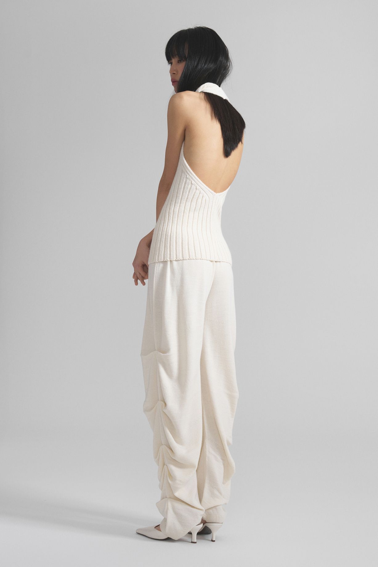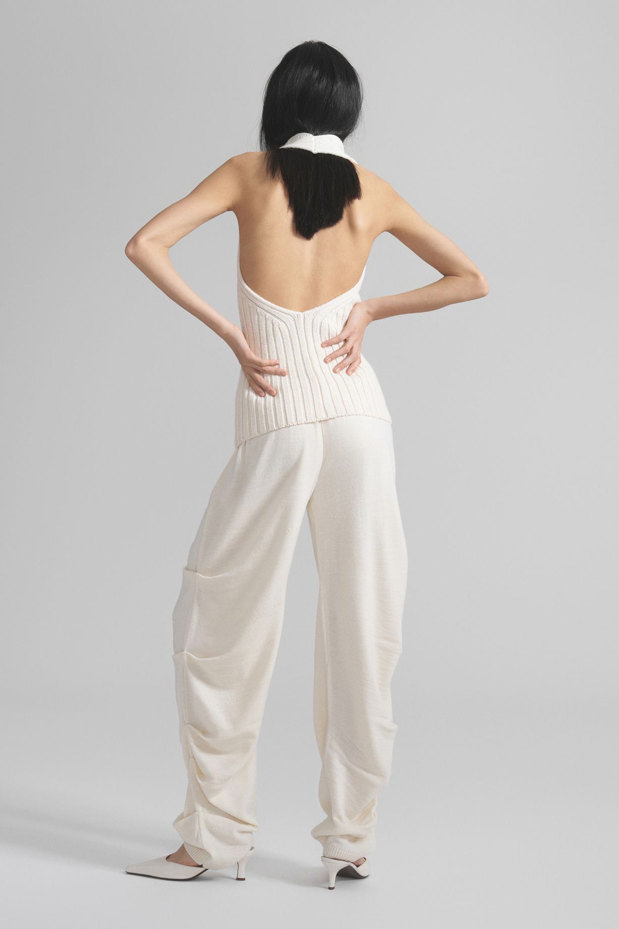 Свободные брюки из мягкой мериносовой шерсти. Пояс на резинке, защипы по бокам, заниженная посадка. Ткань плотная, но податливая, без блеска.Состав: 100% мериносовая шерсть