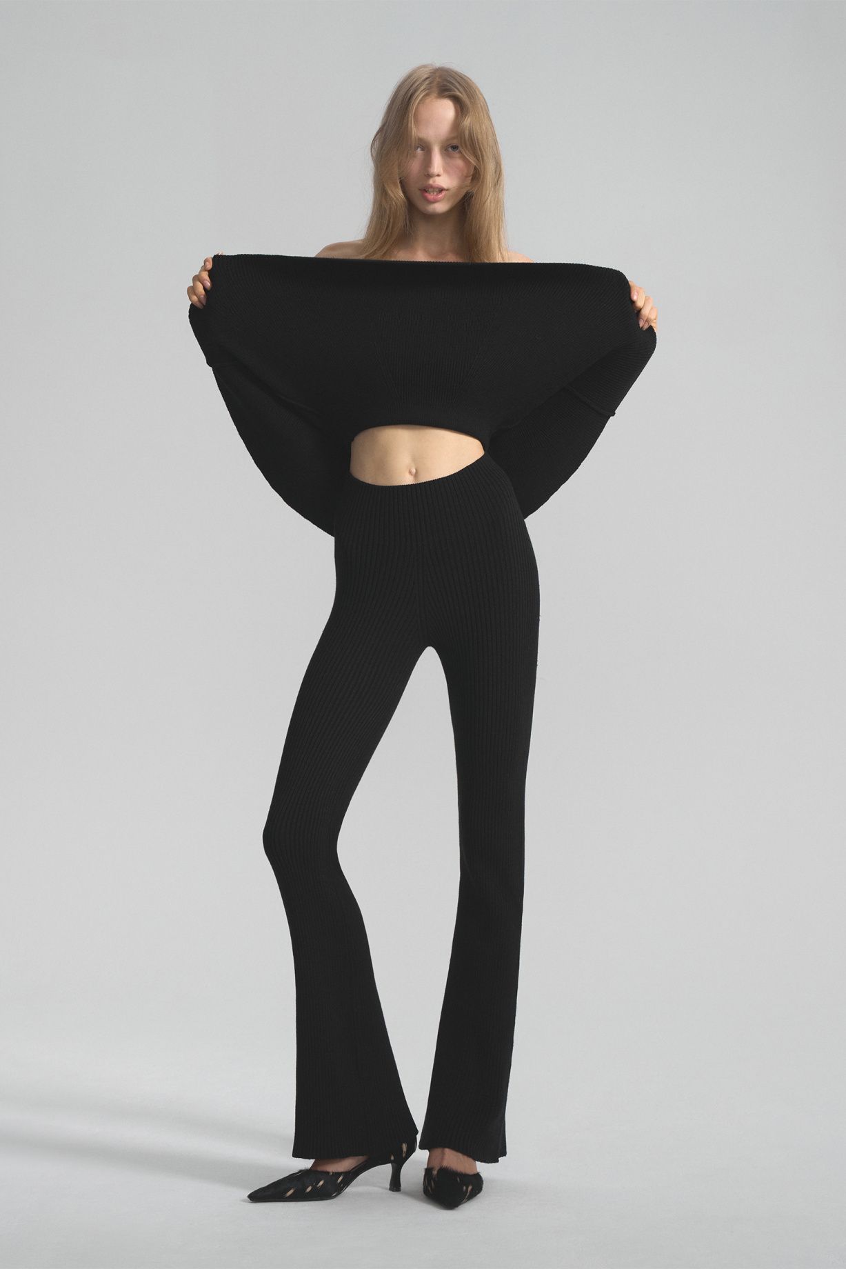 Трикотажные брюки с добавлением шерсти австралийского мериноса в состав. Высокая посадка, широкий пояс, облегающие и расклешенные книзу, отлично сочетаются в комплекте с платьями.Состав: 80% вискоза, 20% шерсть