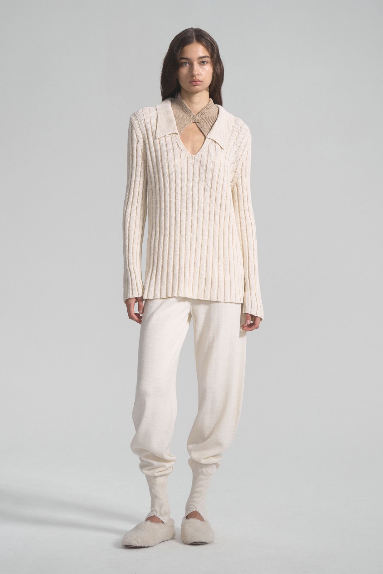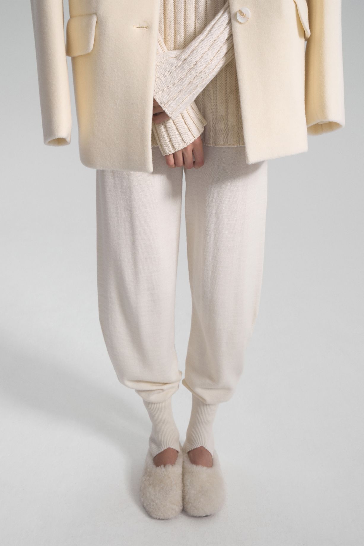 Бесшовные трикотажные брюки из шерсти австралийского мериноса с широким уобным поясом, свободного кроя суженные книзу со штрипками.Состав: 100% шерсть австралийского мериноса