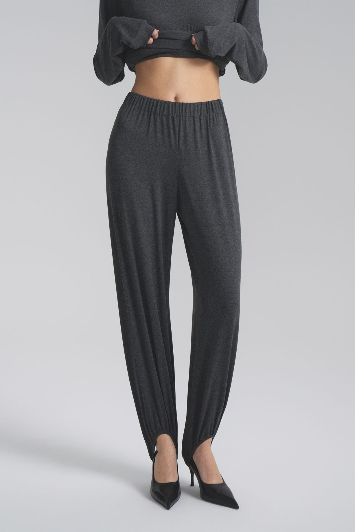 Трикотажные брюки из мягкого эластичного материала со стрипками, удобный пояс на талии шириной 4 см.Состав: 80% модал, 10% эластан, 10% вискоза