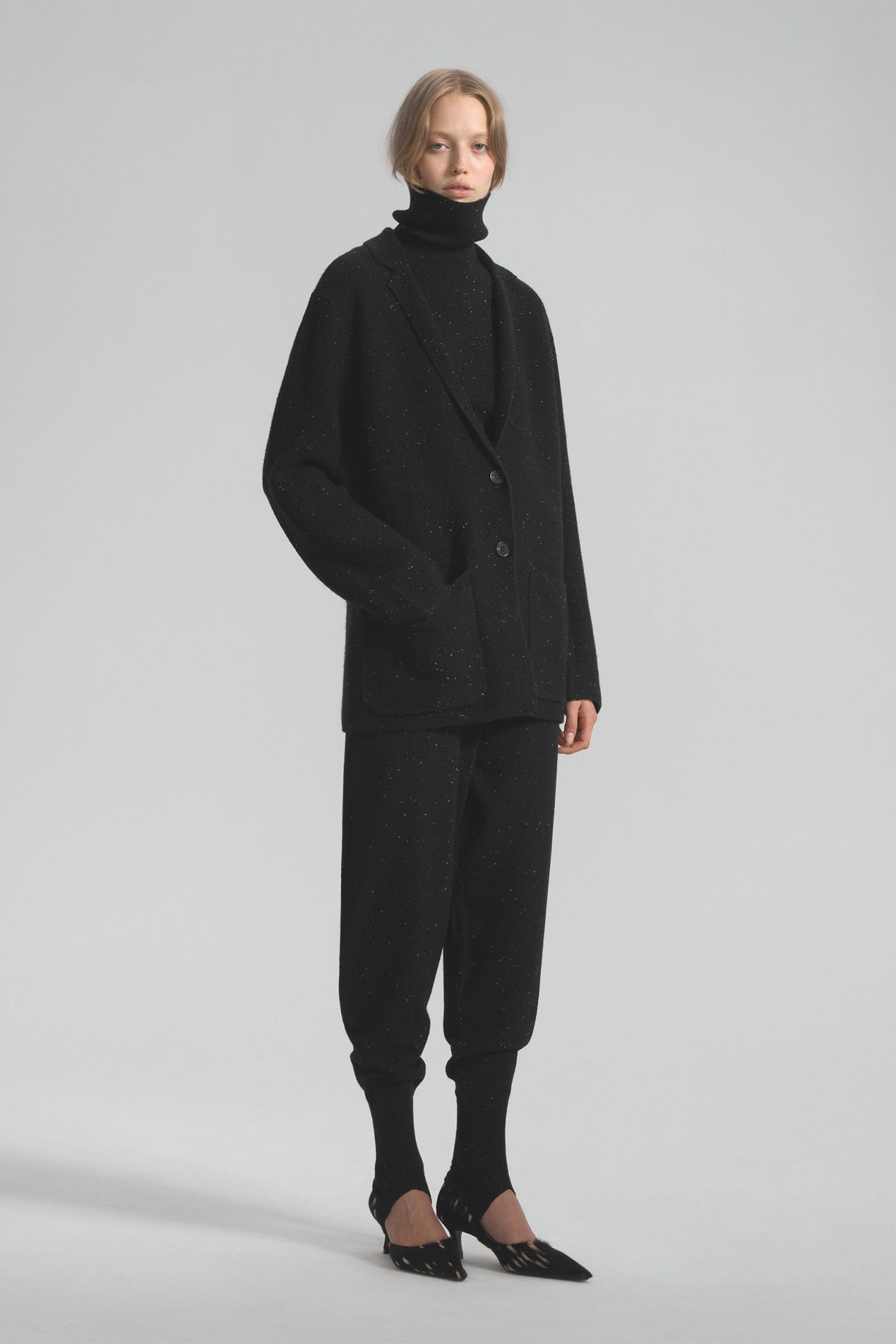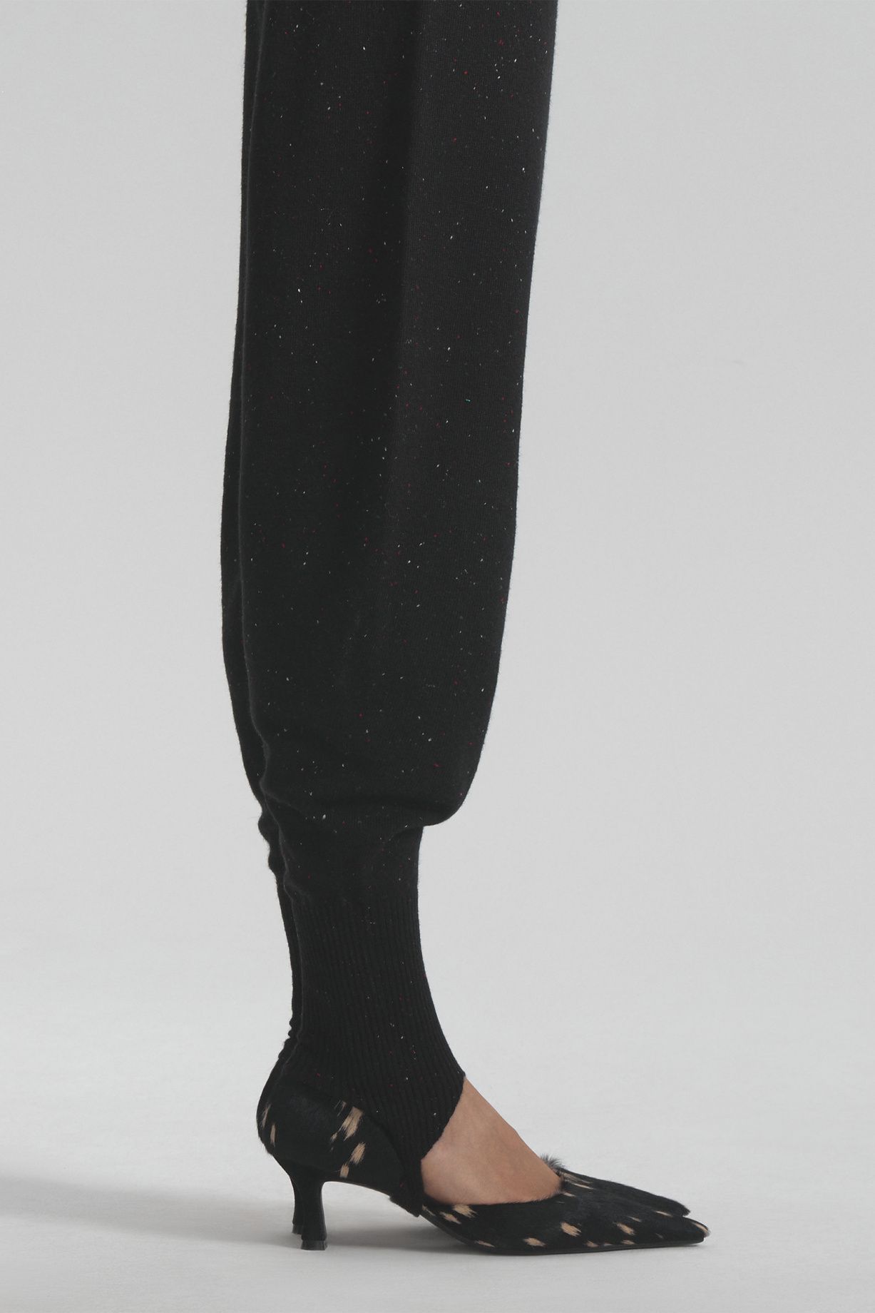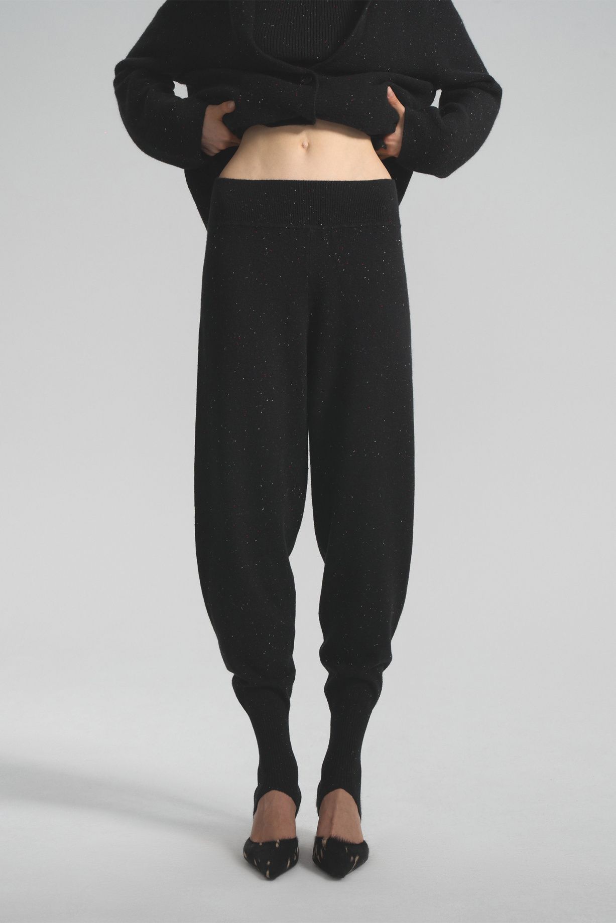 Трикотажные брюки из шерсти австралийского мериноса. Свободные и широкие по бедру, сужаются книзу и мягко фиксируются на стопе. В пряжу вплетаются крошечные шарики волокон другого цвета, чтобы трикотаж стал фактурным, нить неоднородной, а оттенок глубоким.Состав: 80% шерсть мериноса, 15% вискоза, 5% эластан