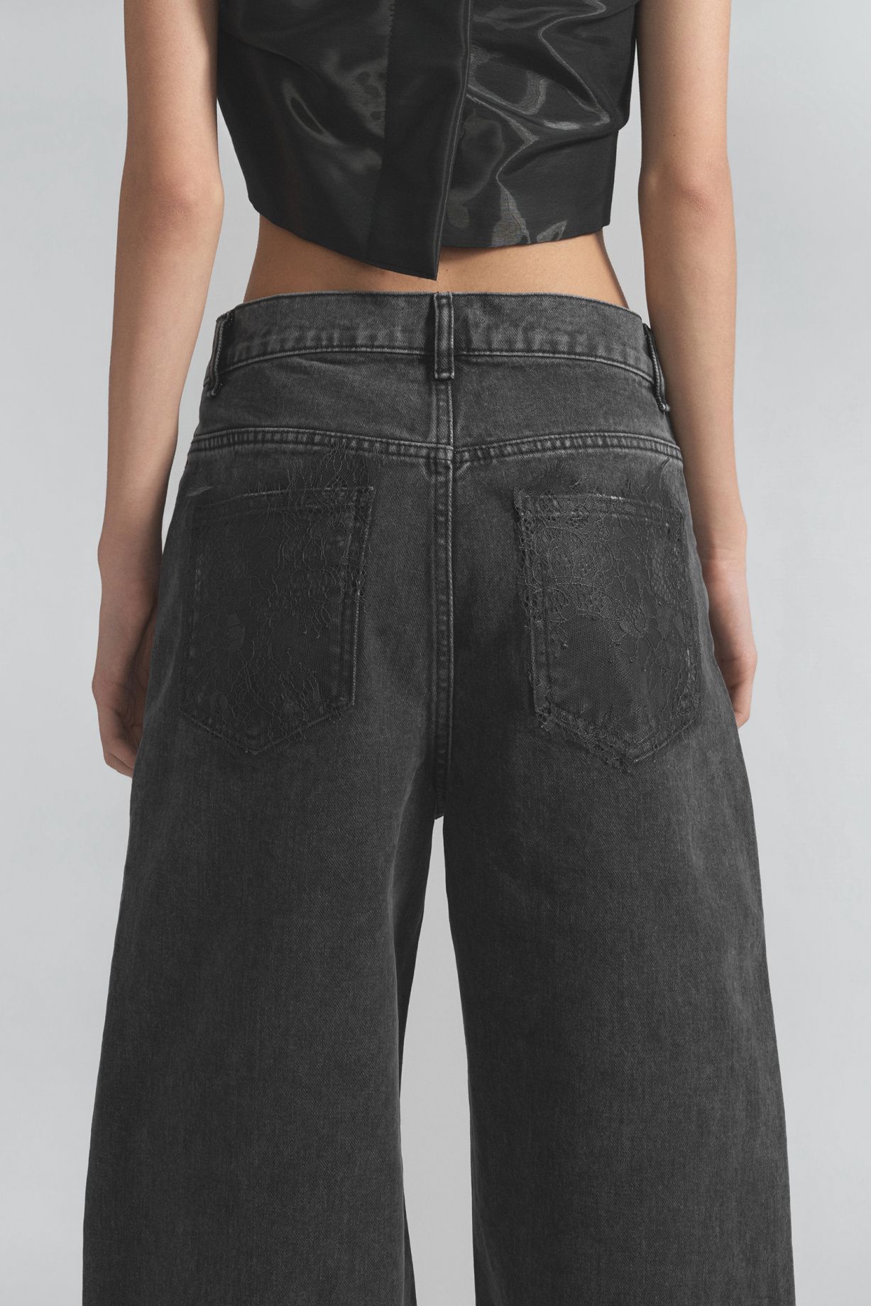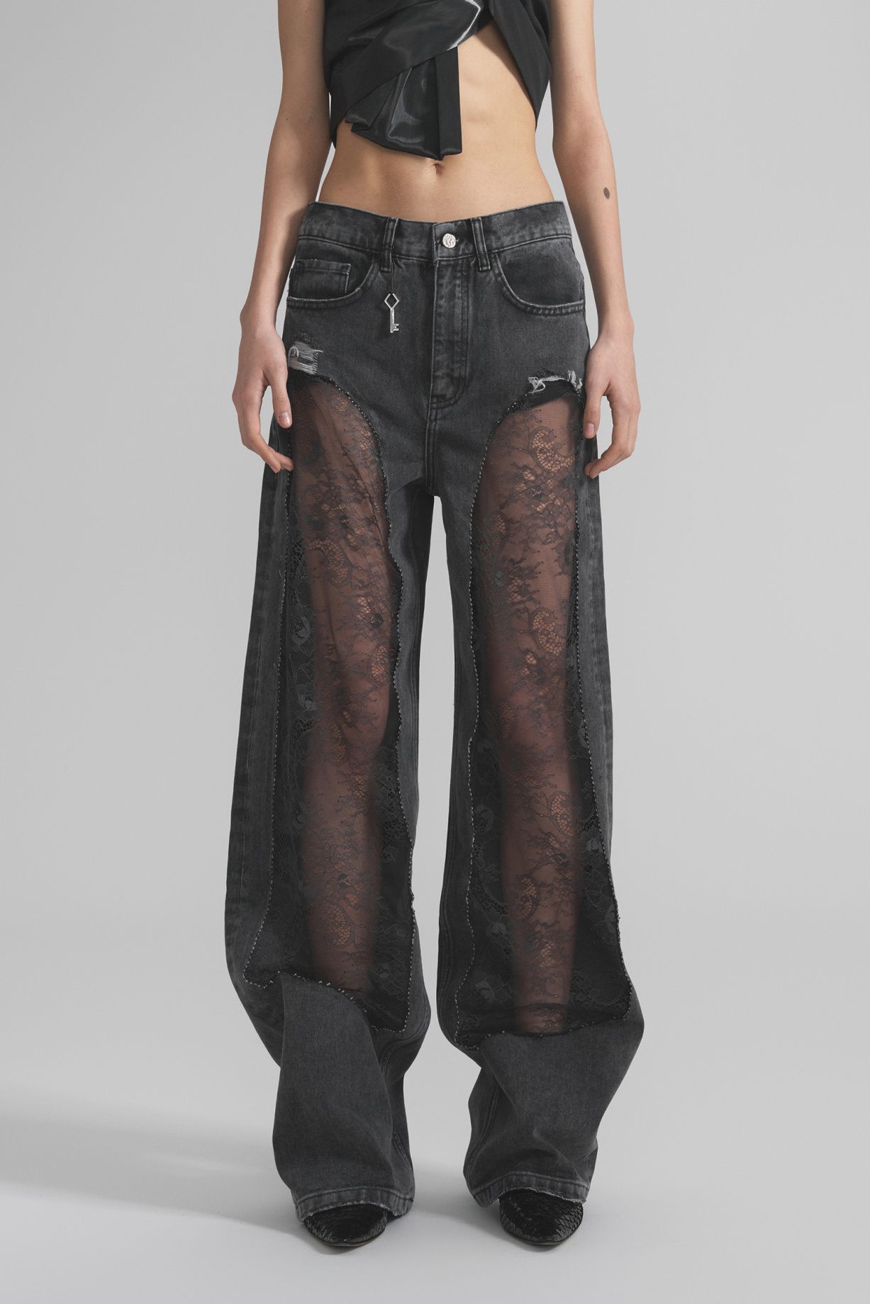 Джинсы с декоративным кружевом. Модель приобретает изысканность благодаря элегантным вставкам из ажурного кружева по передней части. Контраст денима и кружева создаёт тонкую игру текстур. Карманы накладные.