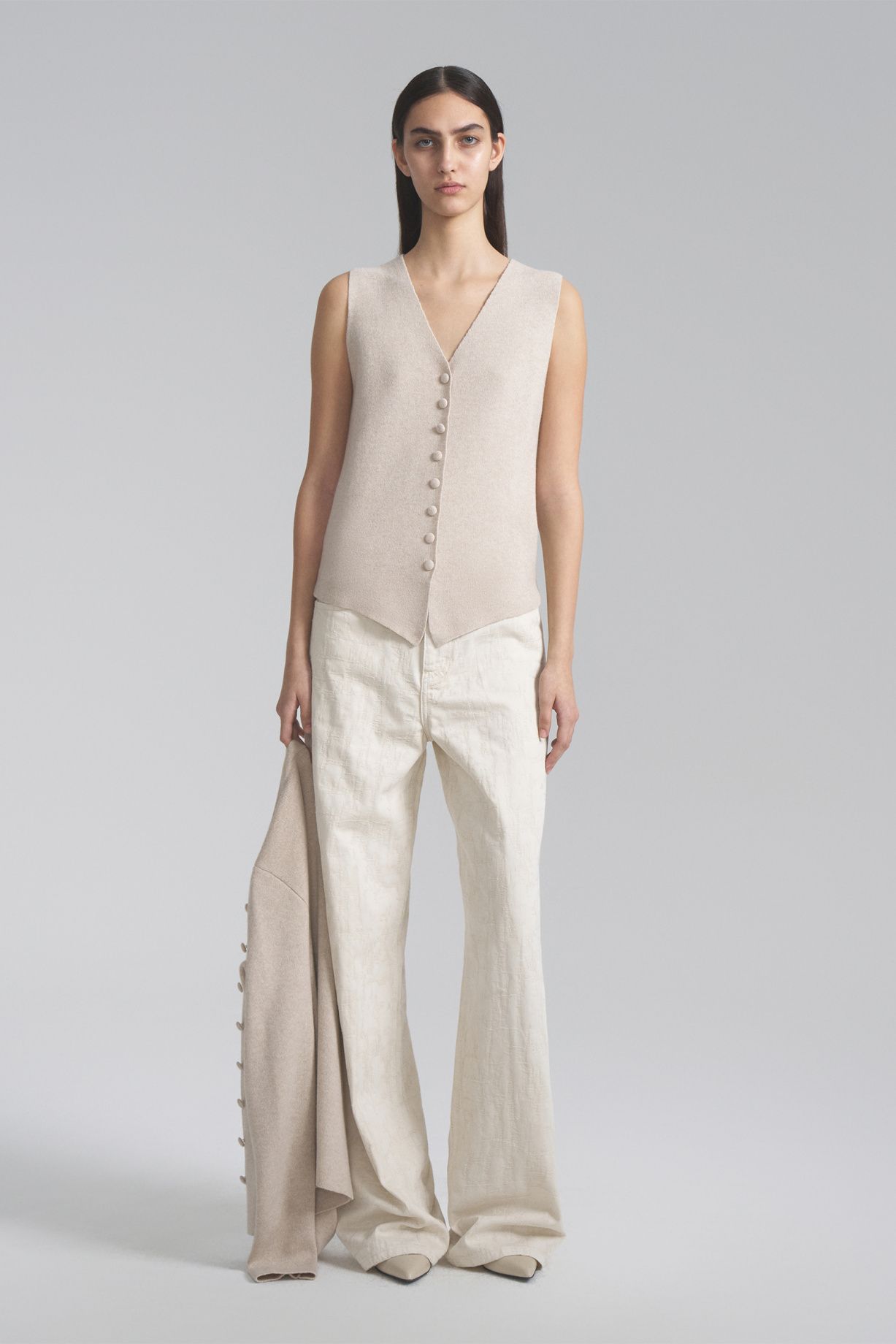 Джинсы из жаккардового денима, натуральный хлопок, прямой крой, средняя посадка и классическая застежка на молнию обеспечивают комфортную посадку. Уникальная текстура и сливочный оттенок - результат двухэтапной варки.Состав: 100% хлопок