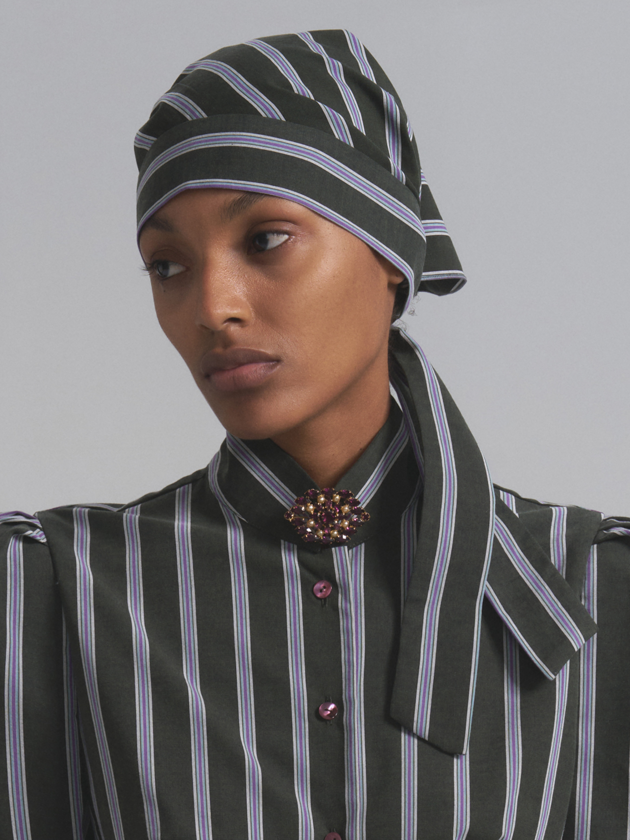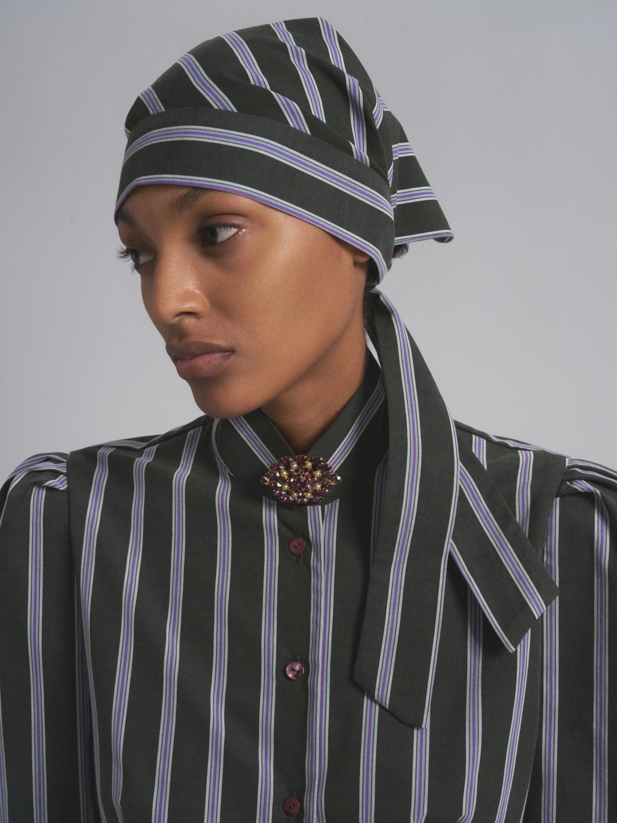 Косынка из бархатистого перуанского хлопка, завязывается сзади на широкую ленту. Предлагаем стилизовать вместе с костюмом-пижамой из той же ткани.