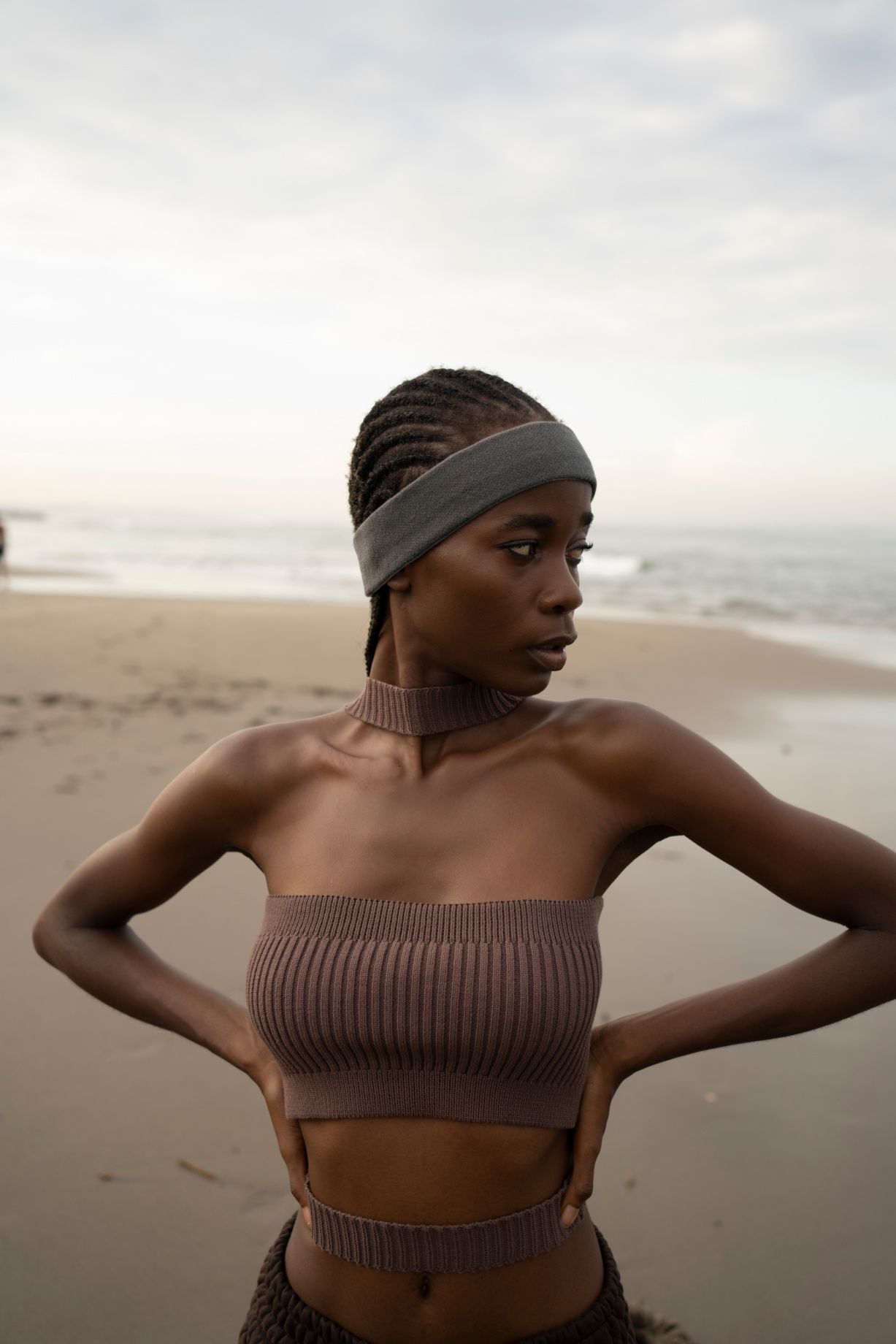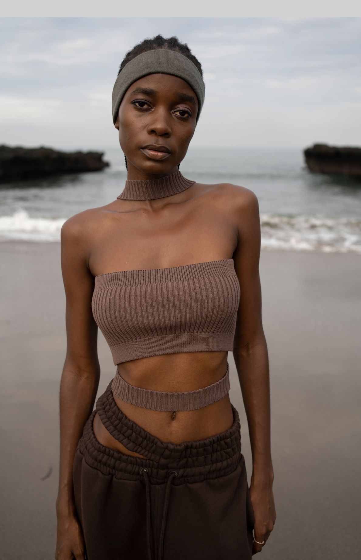 Широкая эластичная повязка с рельефной текстурой. Выполнена из мягкого трикотажного материала в рубчик.