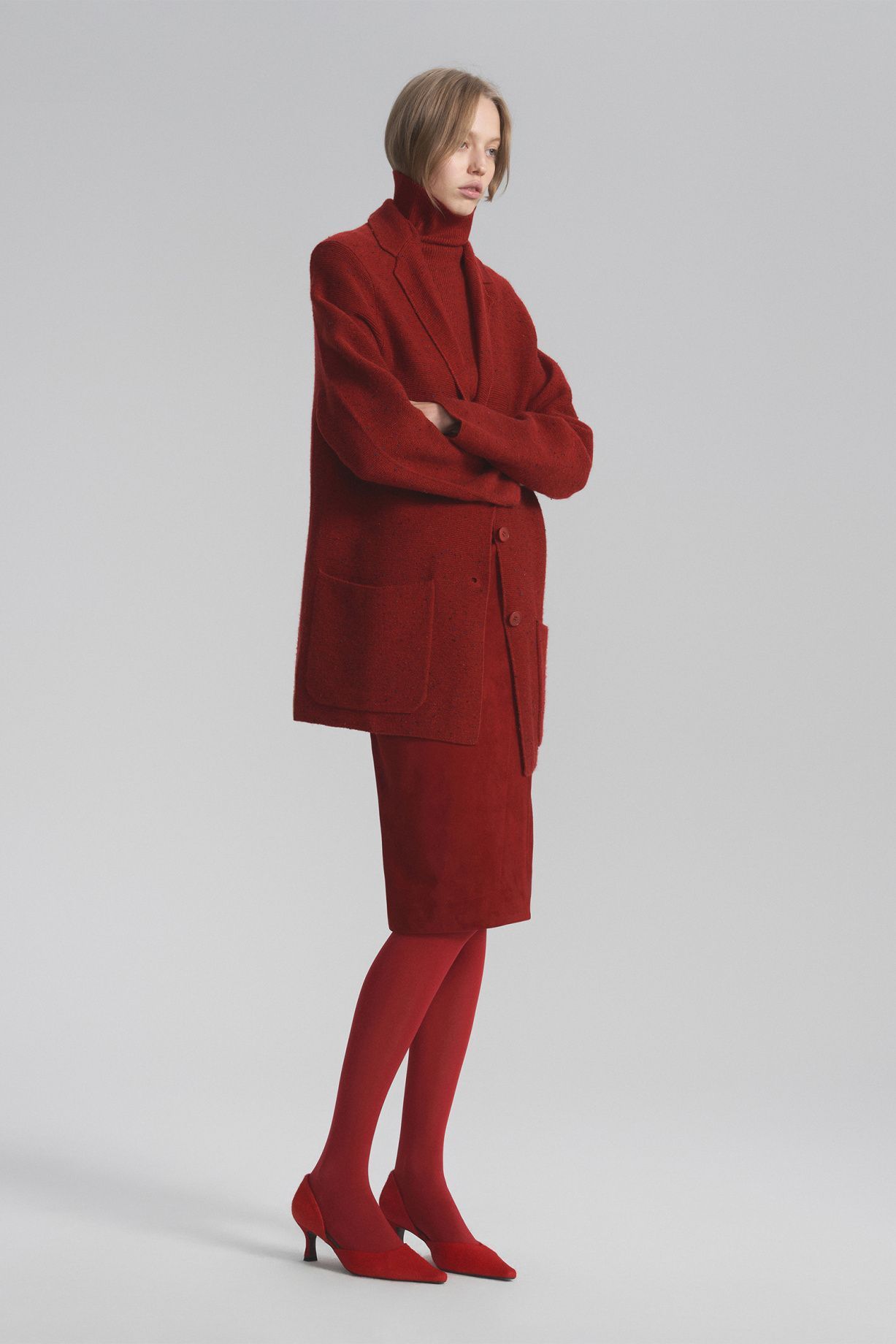 Трикотажный жакет из мягкой мериносовой шерсти с отложным воротником и V-образной линией выреза на двух пуговицах. Модель сочетает форму классического жакета и тактильный комфорт трикотажа.Состав: 80% шерсть мериноса, 15% вискоза, 5% эластан
