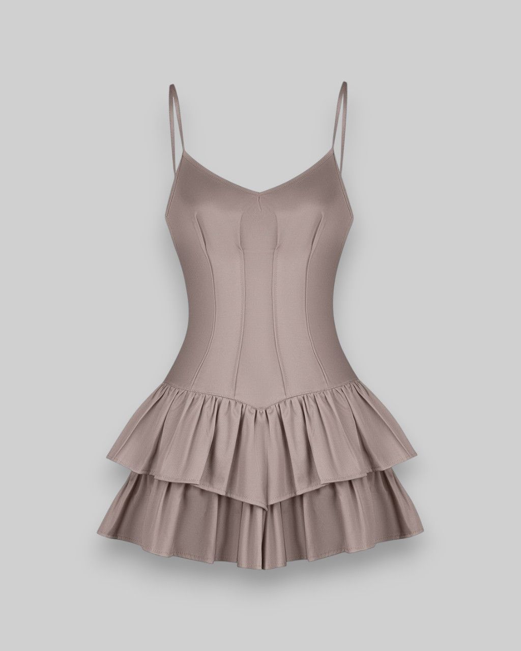 Комбинезон мини сшит, как корсет на тонких бретелях, юбка с двойными воланами.Состав: 80% вискоза, 10% хлопок, 10% эластан