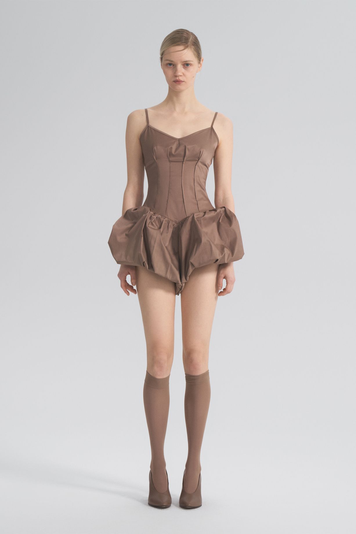 Комбинезон мини сшит, как корсет на тонких бретелях, юбка с двойными воланами.Состав: 80% вискоза, 10% хлопок, 10% эластан