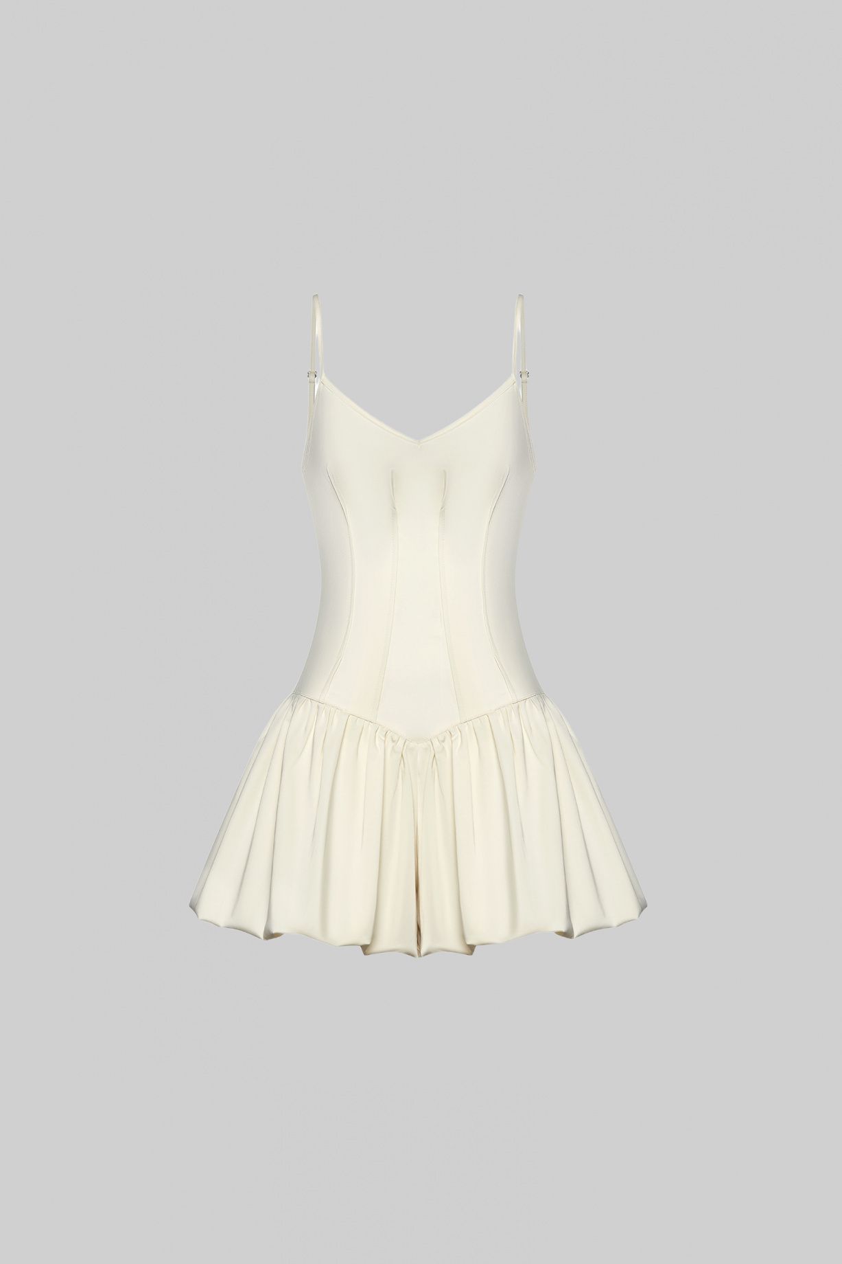 Комбинезон мини сшит, как корсет на тонких бретелях, юбка с двойными воланами.Состав: 80% вискоза, 10% хлопок, 10% эластан
