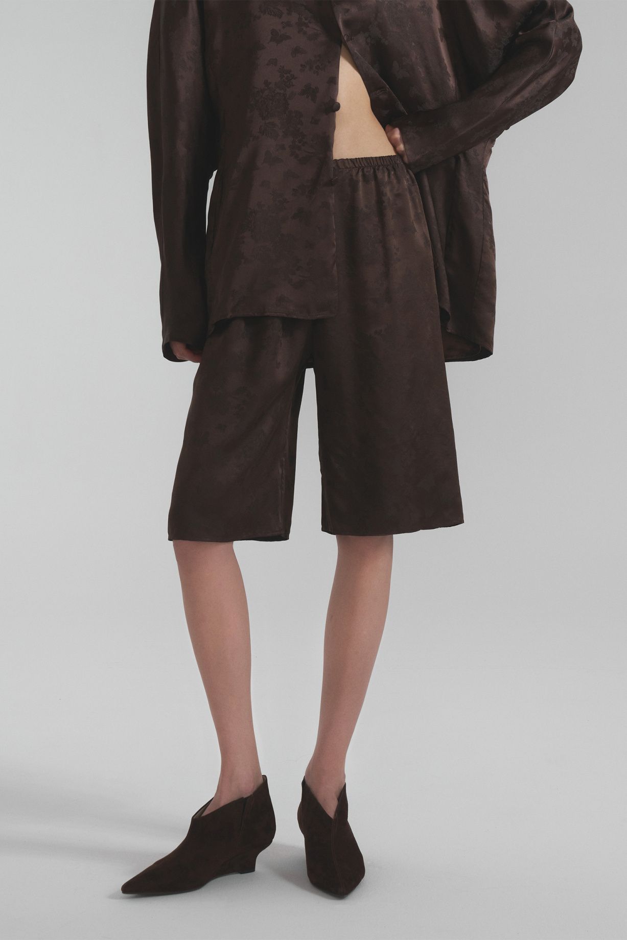 Шорты из струящегося жаккардового шелка длиной до колен.Состав: 50% шёлк, 50%вискоза