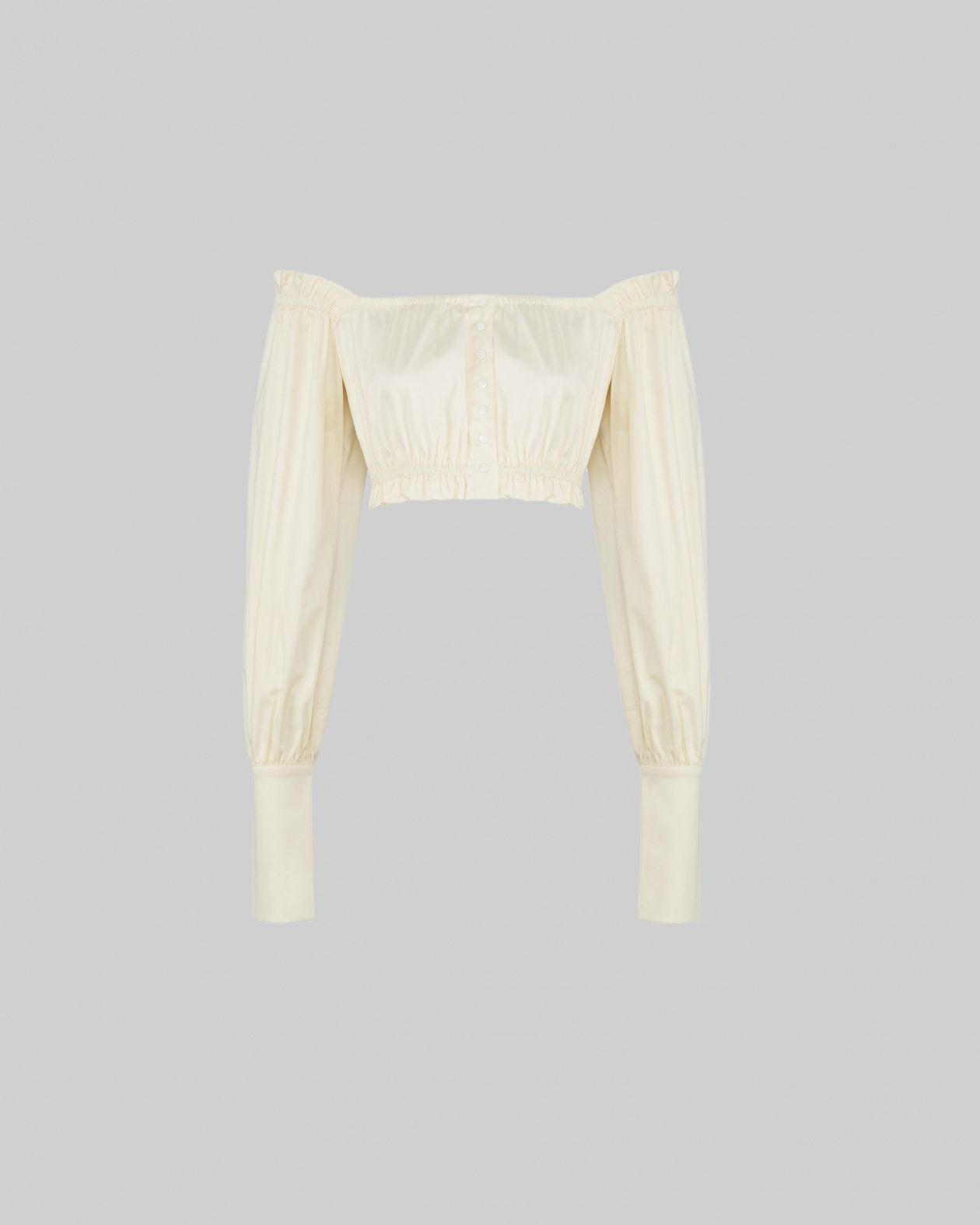 Укороченный топ с рукавами и удлиненными манжетами.Состав: 91% вискоза, 9% эластан