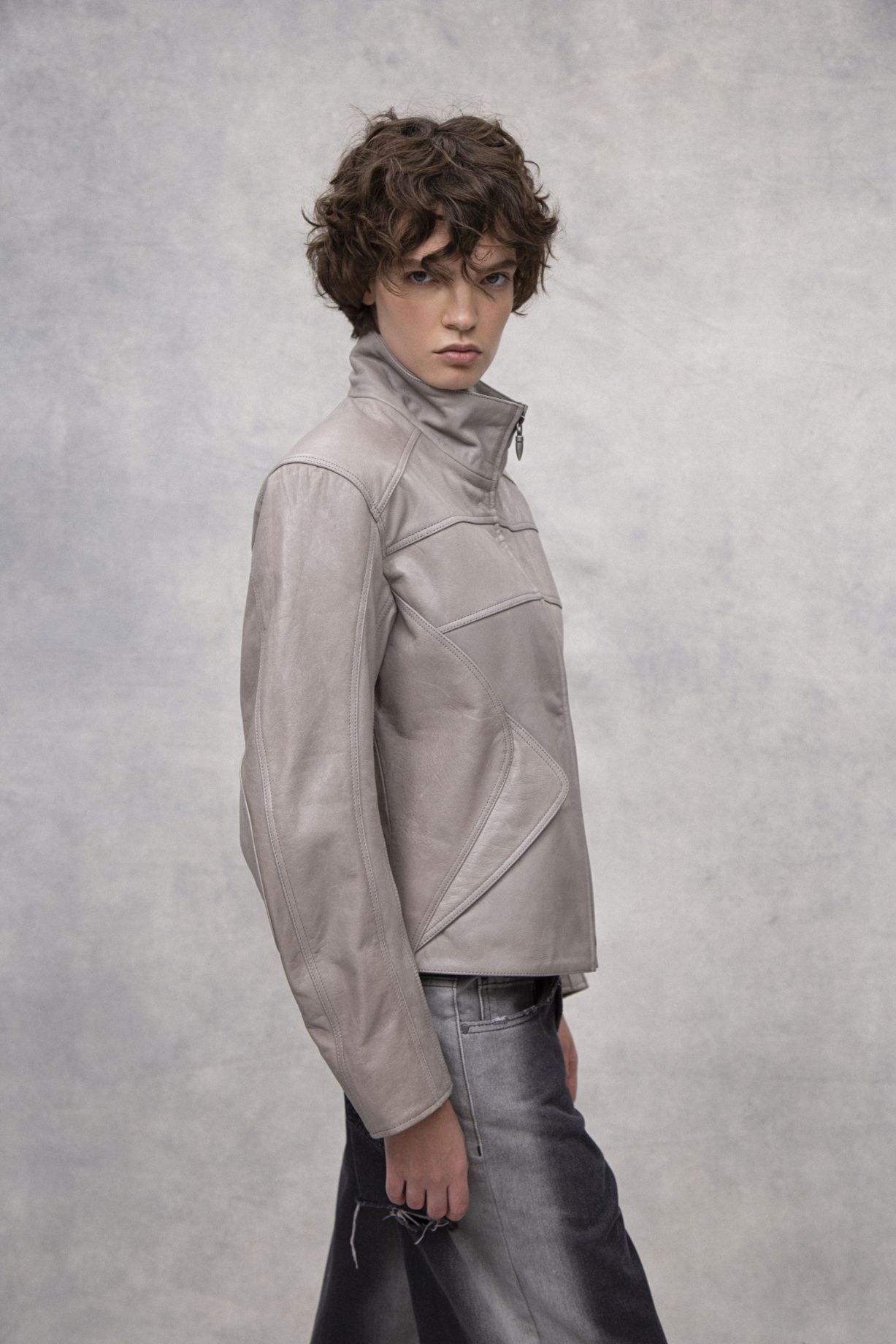 Мотоциклетная куртка из натуральной кожи среднего размера с контрастными вставками выполнена из плотной натуральной кожи. Мы добавили ушки на рукавах и молнии на манжетах, а также регулятор объема по бокам изделия.Состав: 100% натуральная кожа