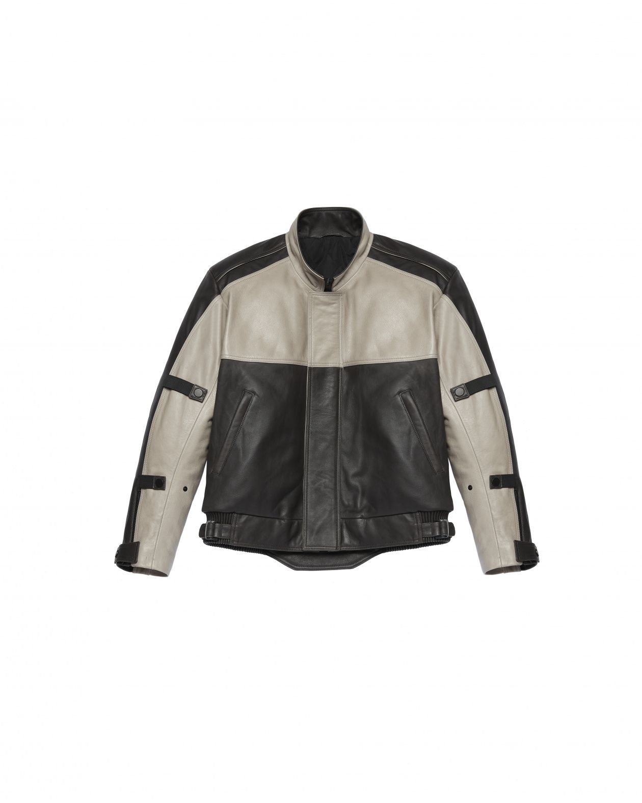 Мотокуртка из натуральной кожи среднего объема с контрастными вставками выполнена из плотной натуральной кожи. На рукава вы добавили паты на кнопкках и молнии на манжетах, а по бокам изделия регулятор объема.Состав: 100% натуральная кожа