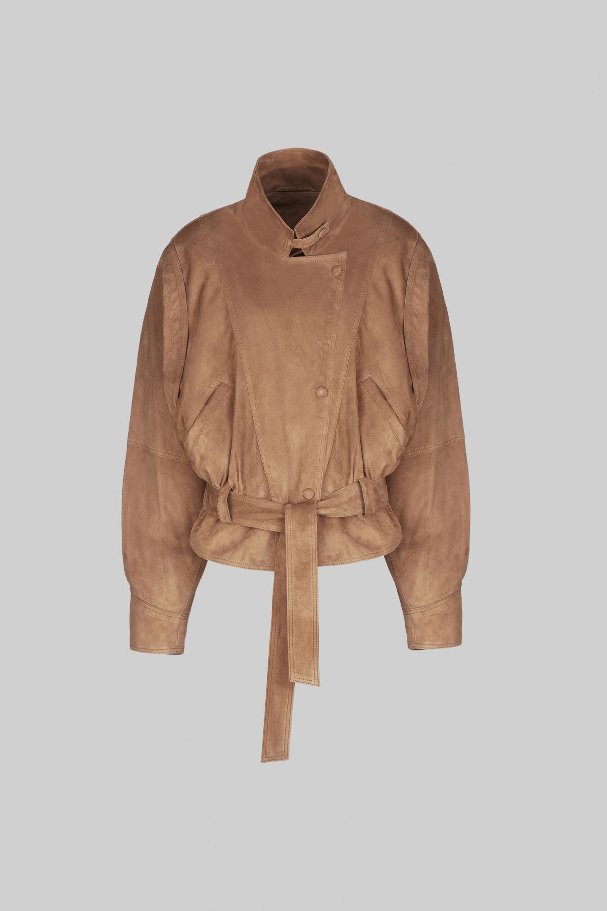 Двубортная замшевая куртка с плавной линией плеч, лацканами и поясом на талии из премиальной замши ручной работы.Состав: 100% натуральная замша/кожа