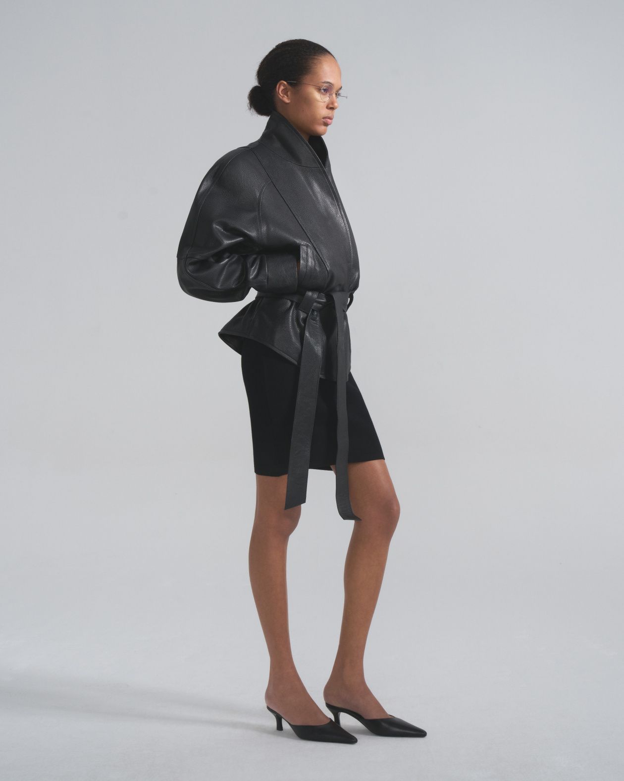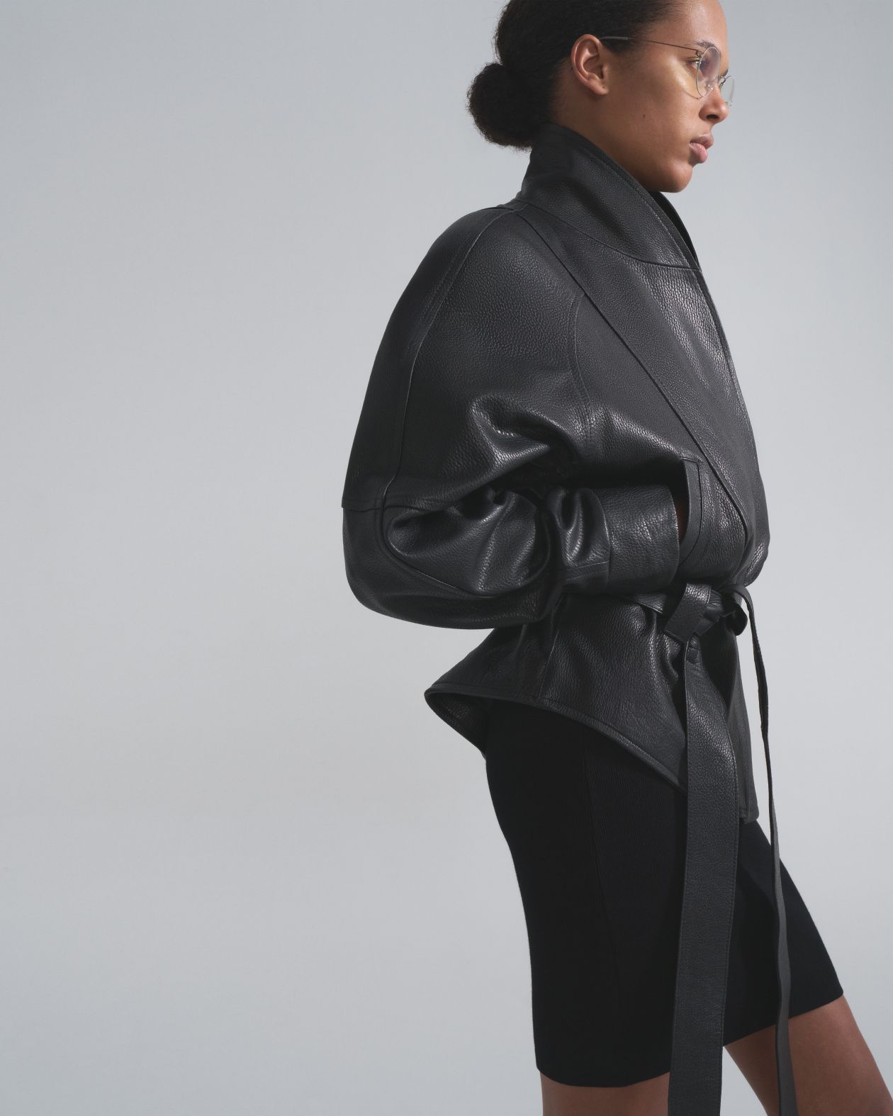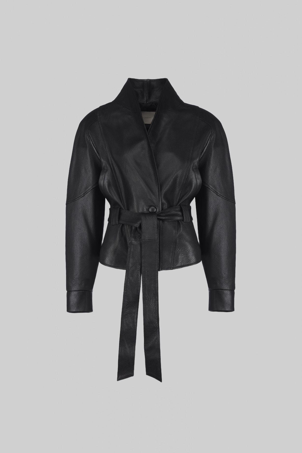 Приталенный жакет ручной работы из натуральной кожи премиального качества с поясом на талии. Объемные рукава с манжетой, воротник-стойка, обтянутая кожа пуговица.Состав: 100% натуральная кожа, подкладка 100% вискоза
