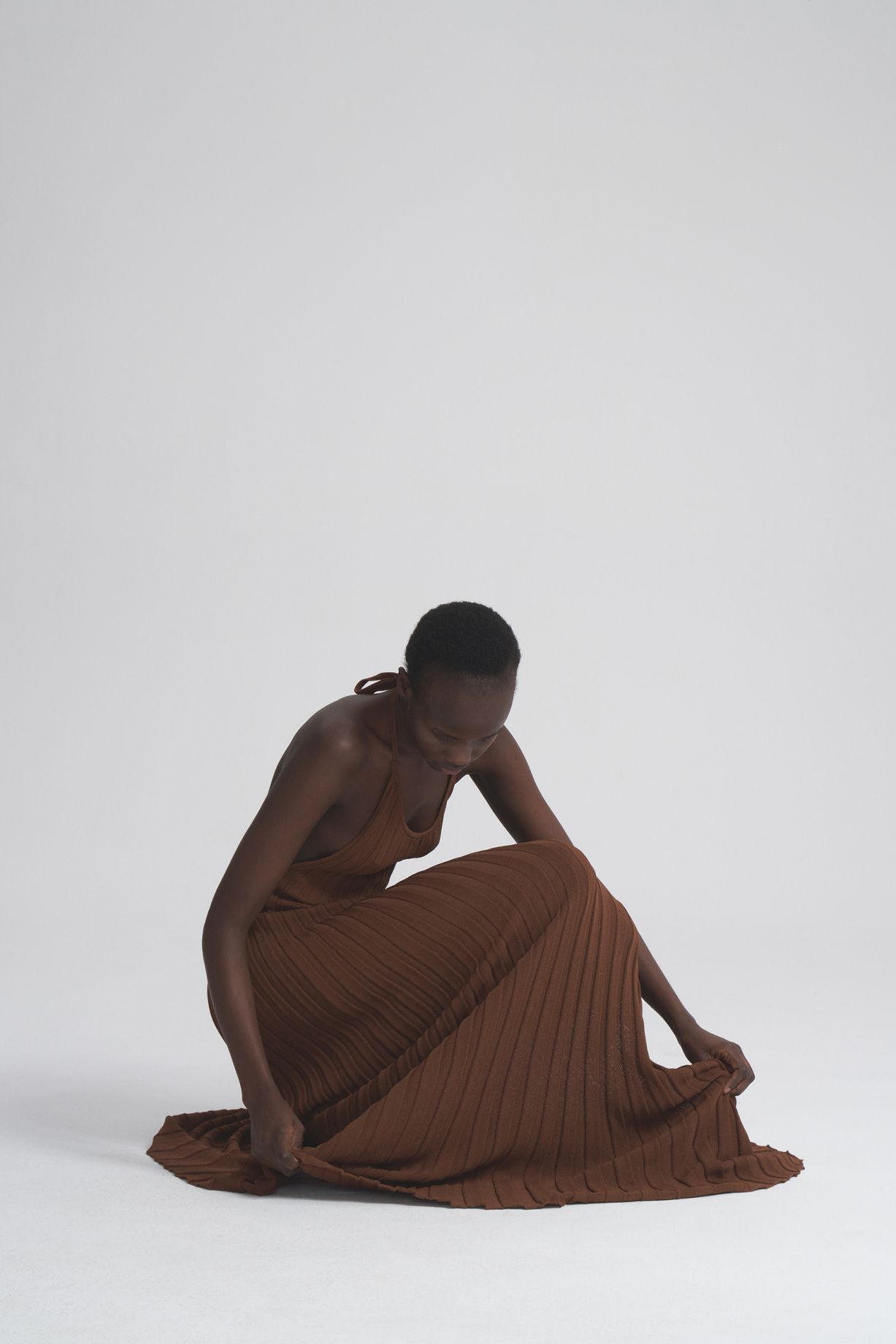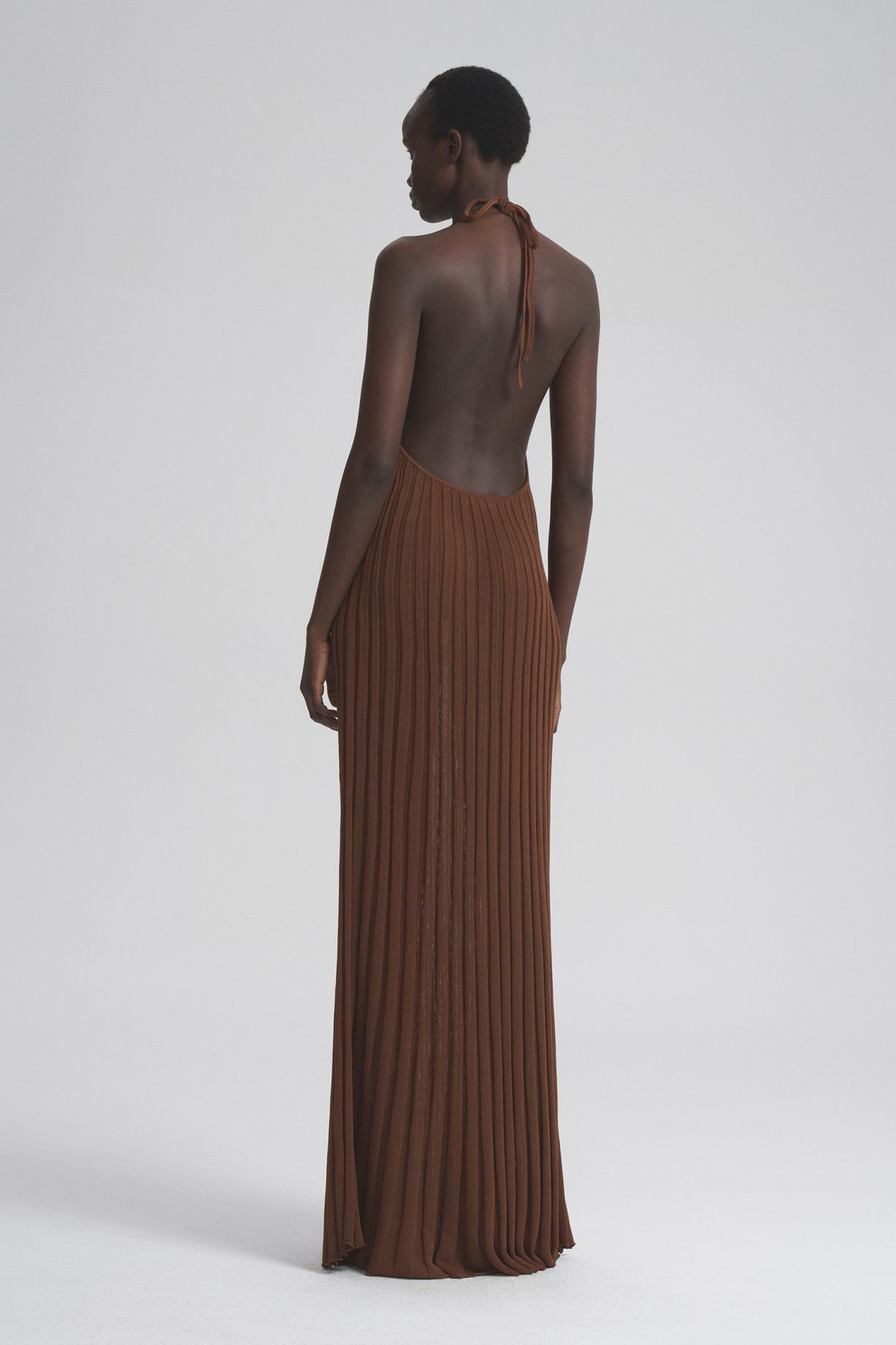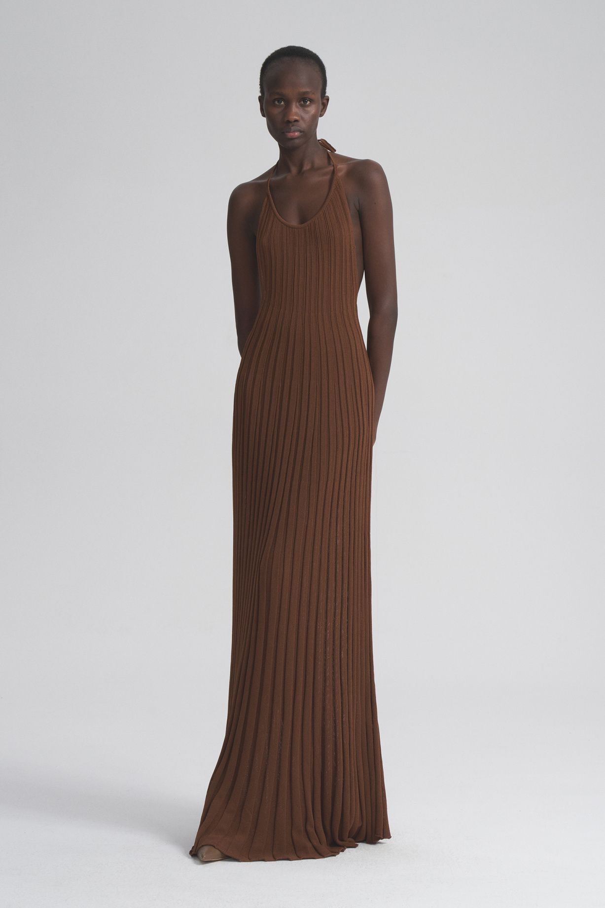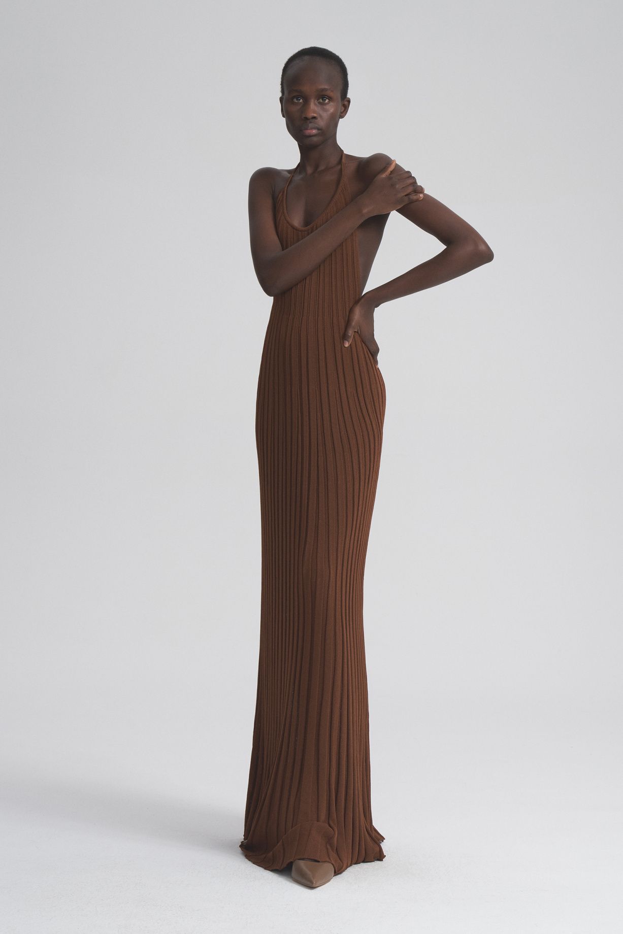 Длинное платье - для особых случаев. Его крой формирует хрупкий, вытянутый силуэт с акцентом на линии плеч, а глубокие проймы позволяют приоткрыть спину. Связано из эластичного тонкого итальянского трикотажа на основе вискозы.Состав: 100% вискоза