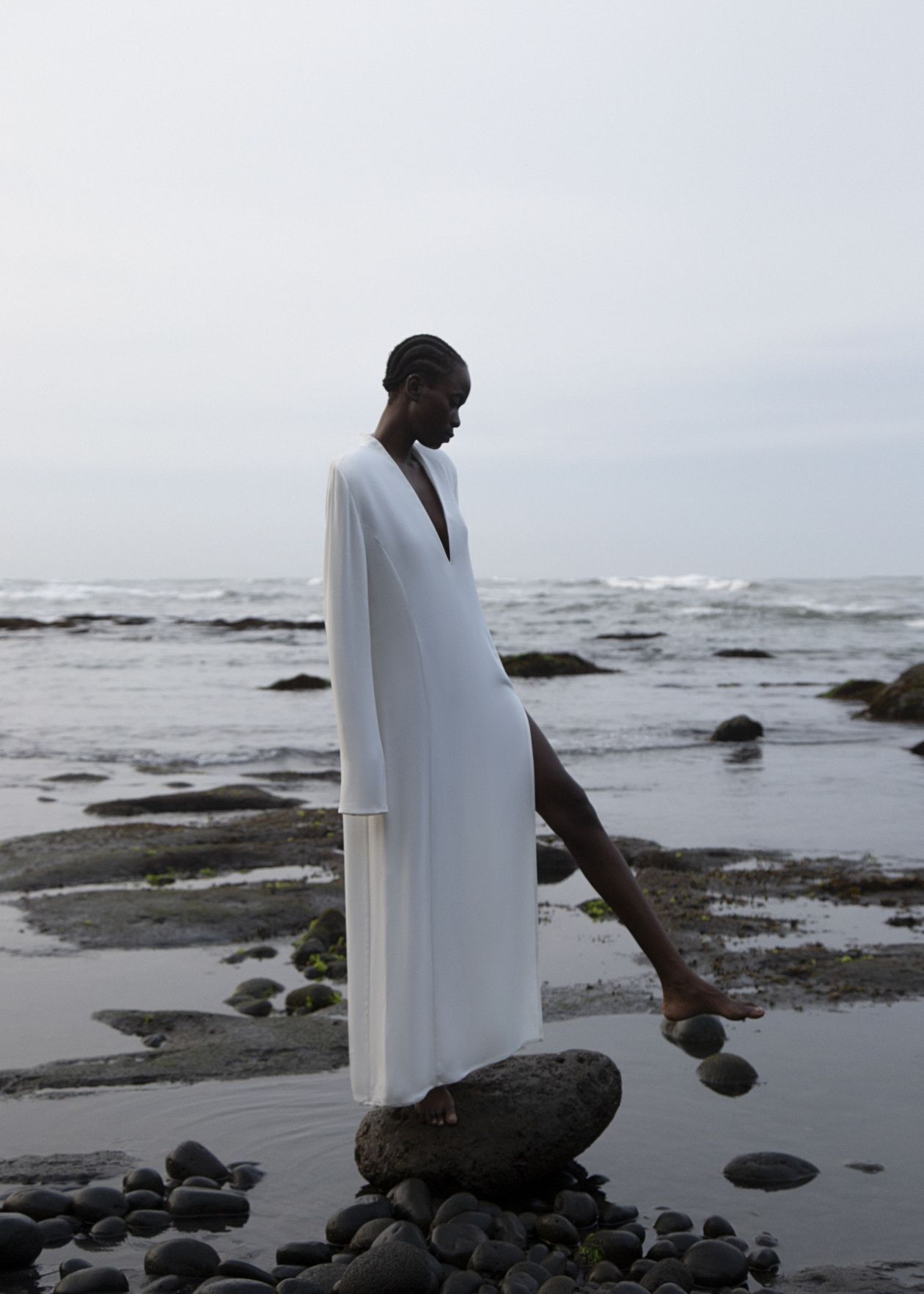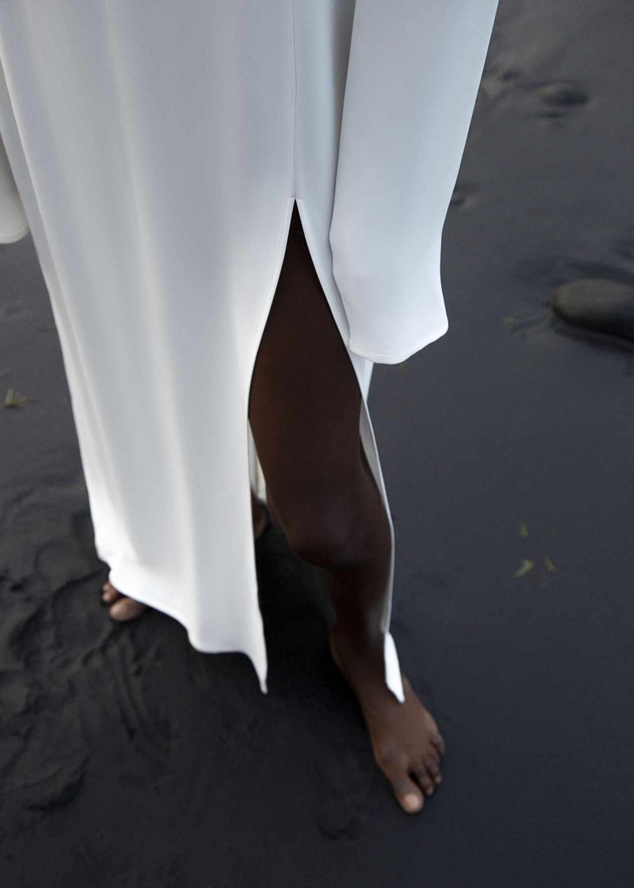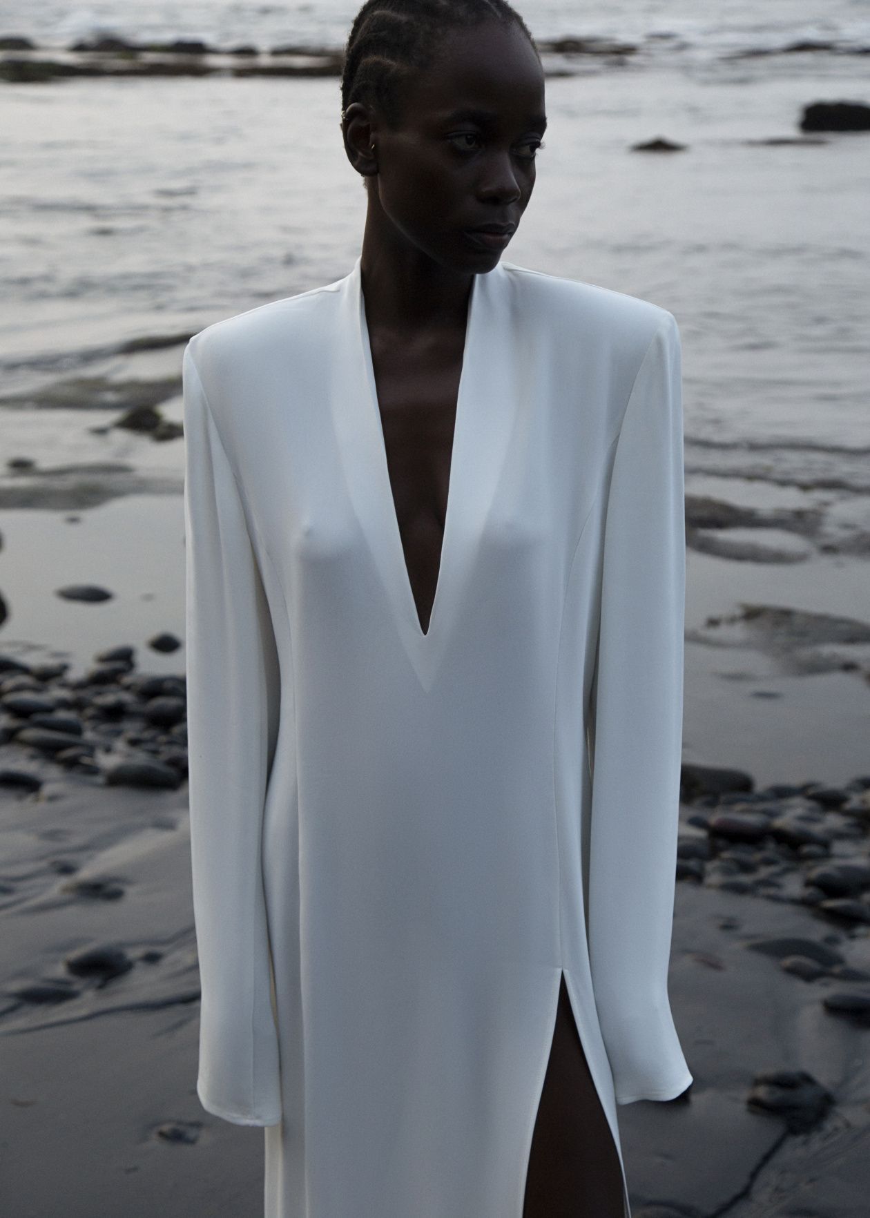 Платье с V-образным вырезом длины макси свободного кроя и длинным рукавом.Состав: 96% вискоза, 4%эластан
