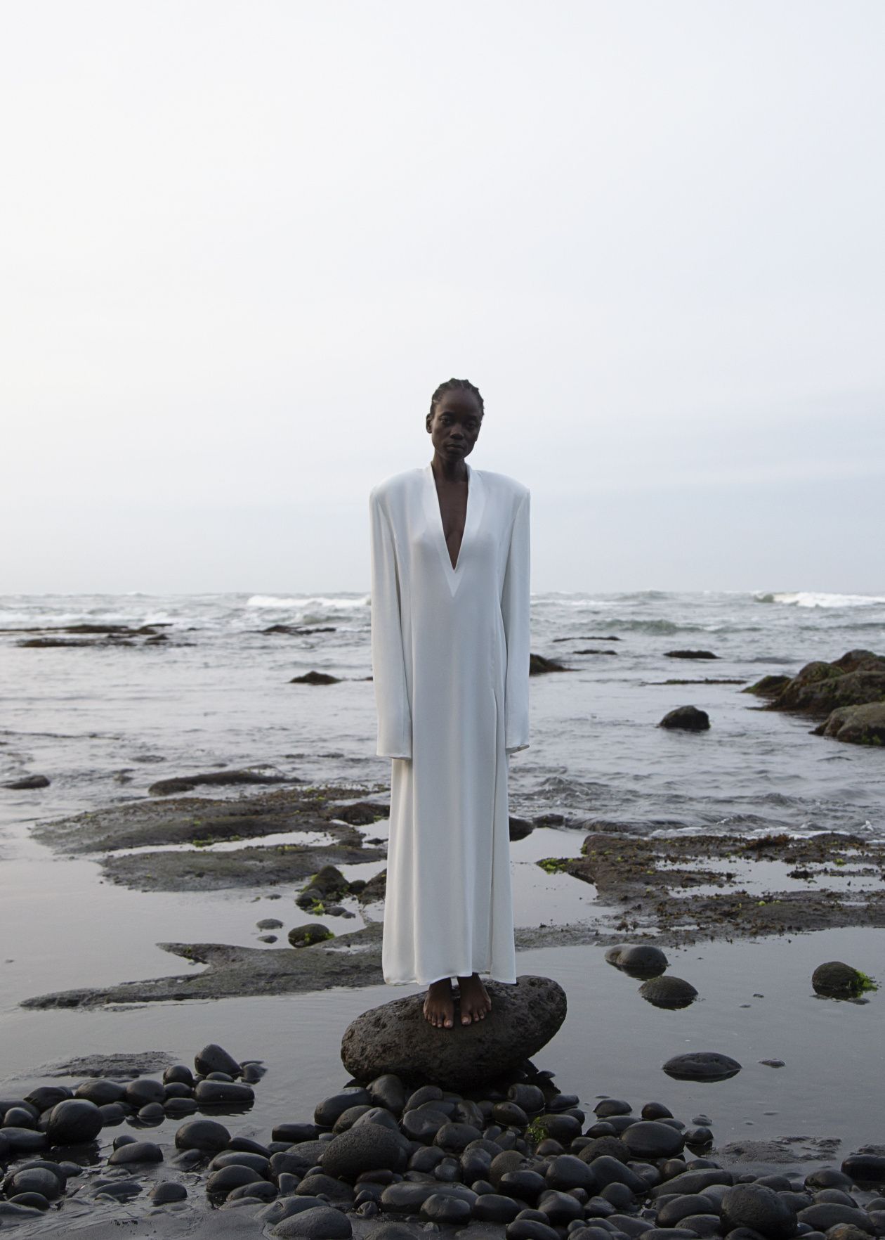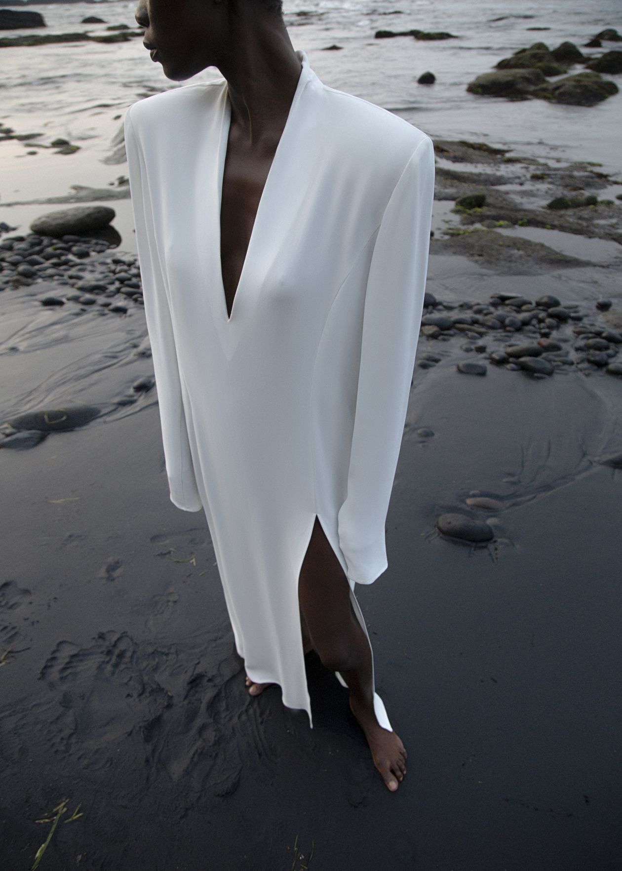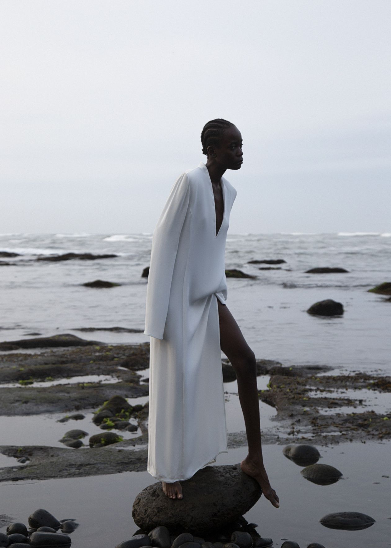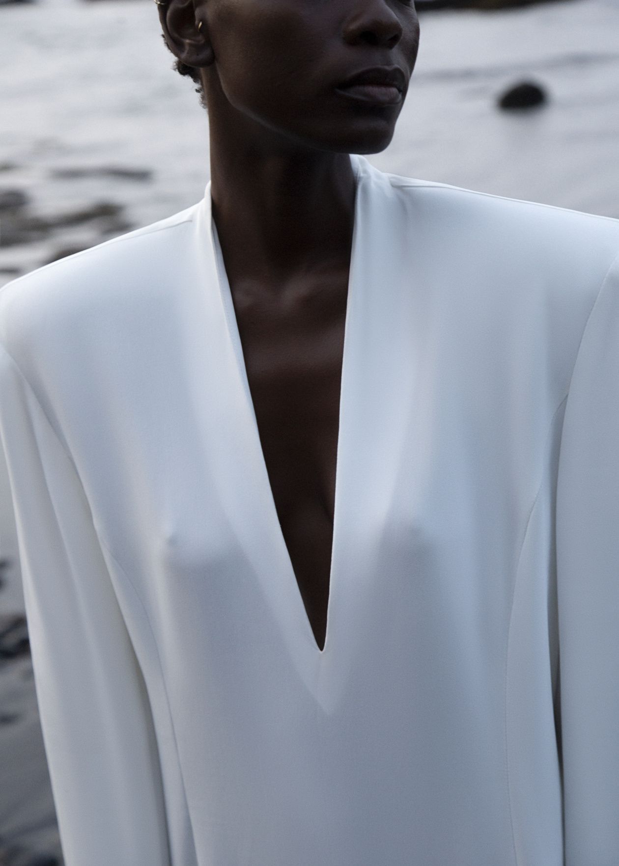 Платье с V-образным вырезом длины макси свободного кроя и длинным рукавом.Состав: 96% вискоза, 4%эластан