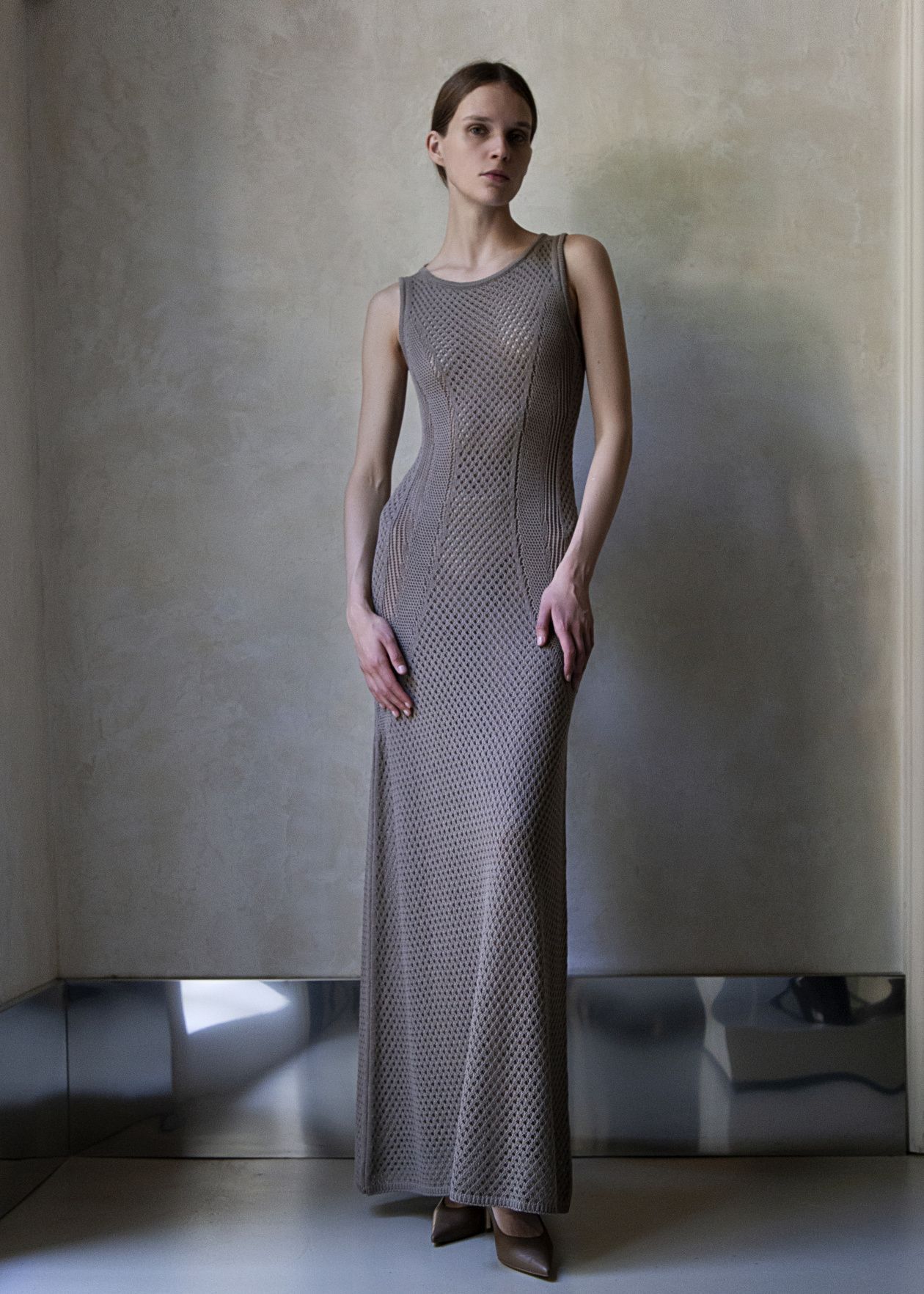 Платье макси Кроше из премиального ажурного кружева длины макси, палантин в комплекте.Состав: 60% хлопок, 40% вискоза