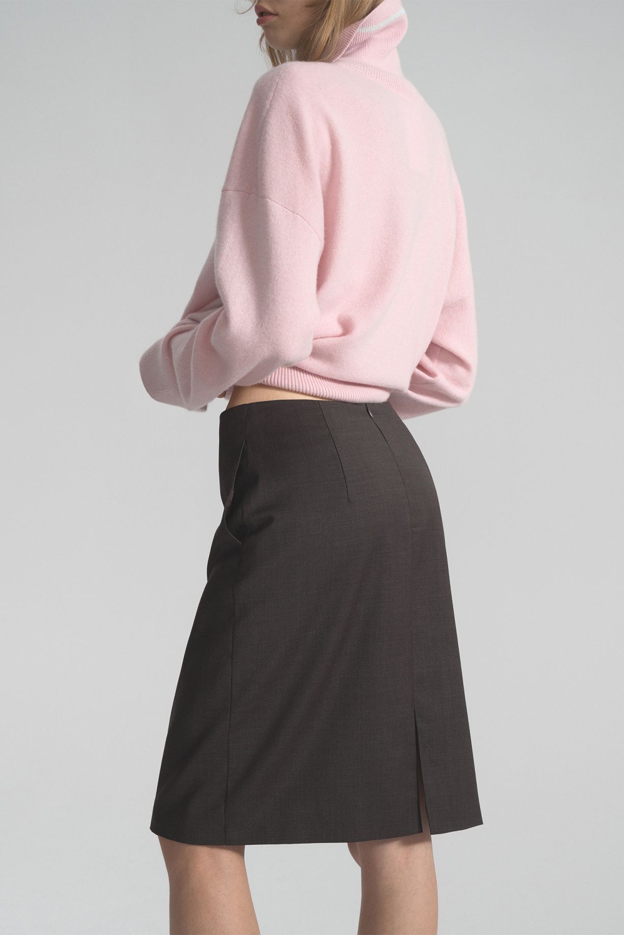 Юбка миди прямого силуэта со средней посадкой. Костюмная ткань из премиальной шерсти, благодаря чему хорошо держит форму и красиво струится в движении. Линия верха с потайной молнией в поясе, сзади — аккуратный разрез для свободы шага. Карманы спрятаны в боковых швах. Подойдет для повседневных и вечерних образов с мягким трикотажем и жакетами.Состав: 80% натуральная шерсть, 20% вискоза