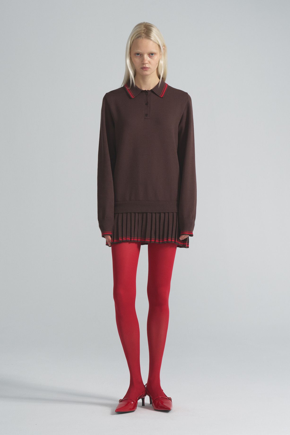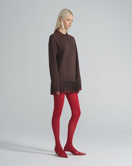 Платье аниме с плиссированной юбкой и воротником поло на пуговицах.Состав: 80% вискоза, 20% шерсть