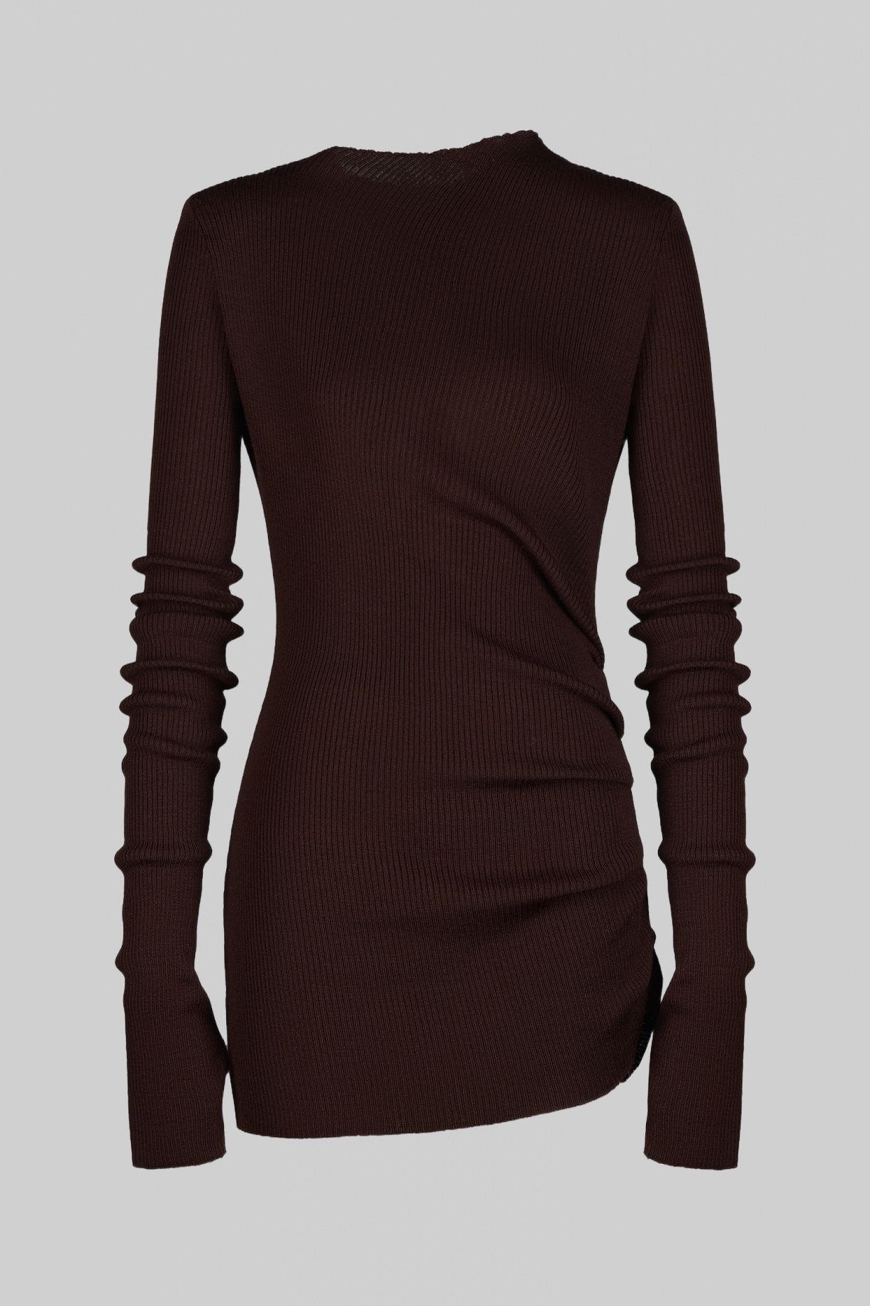 Мини-платье с асимметричным кроем из шерсти австралийского мериноса, сборка по боковому шву, ажурная обработка горловины.Состав: 100% шерсть австралийского мериноса