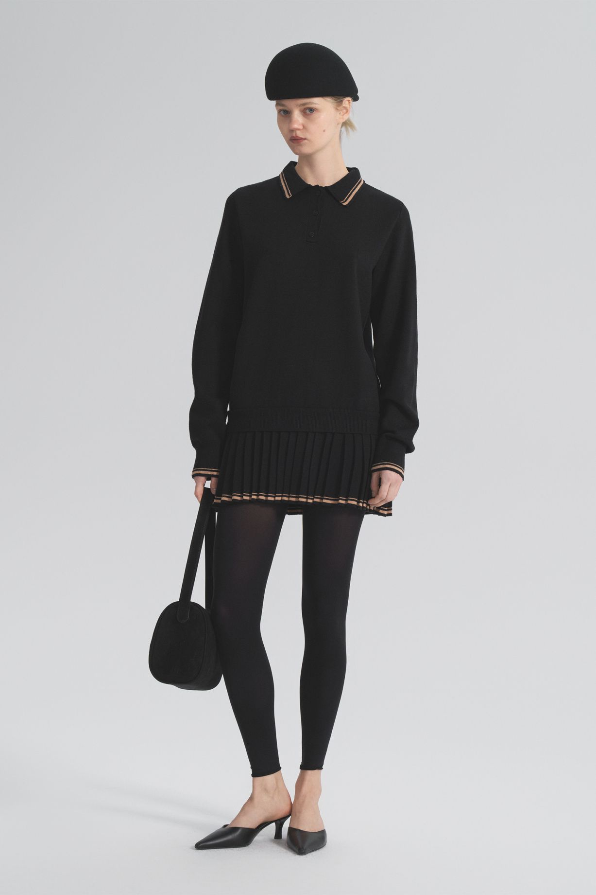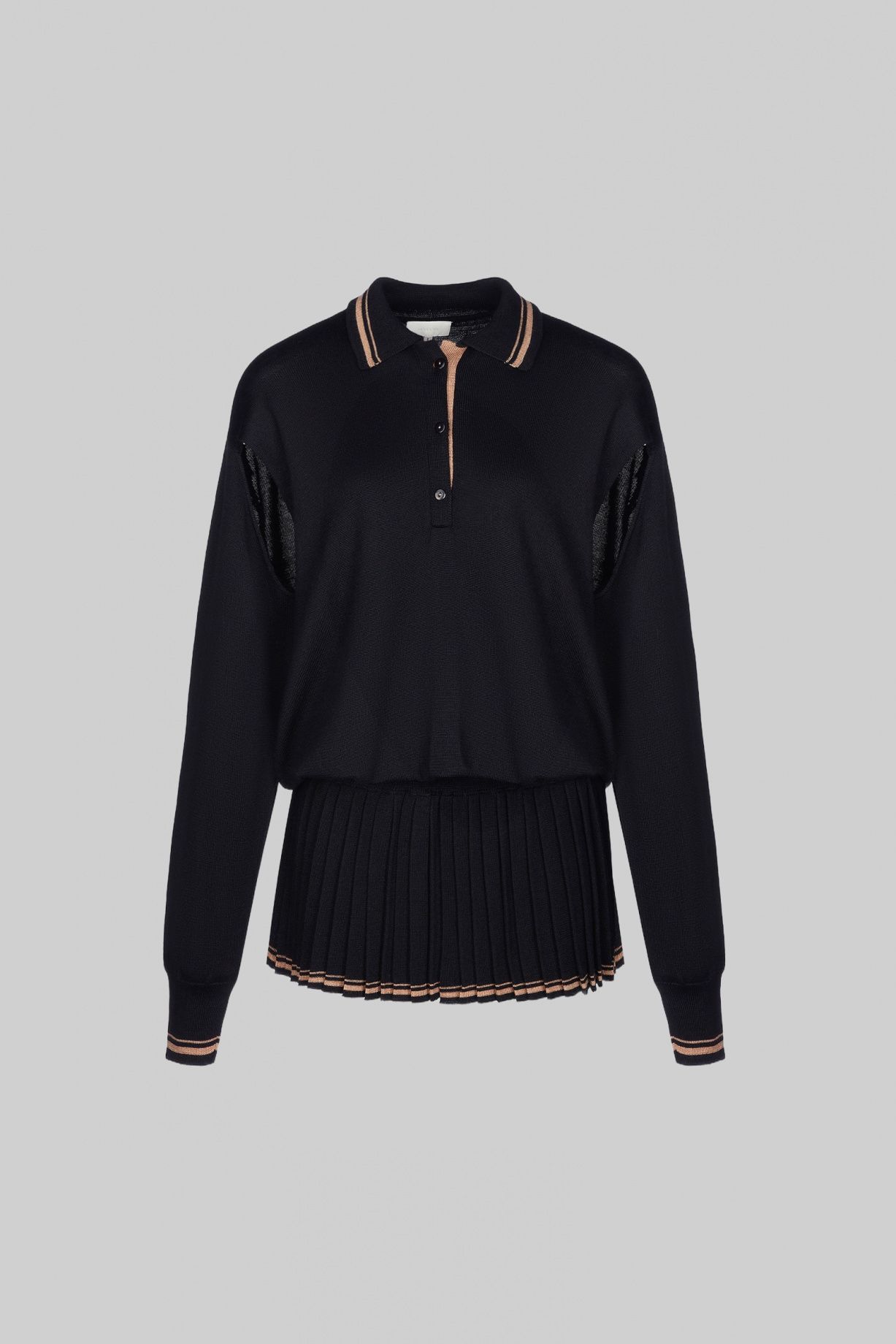 Платье аниме с плиссированной юбкой и воротником поло на пуговицах.Состав: 80% вискоза, 20% шерсть