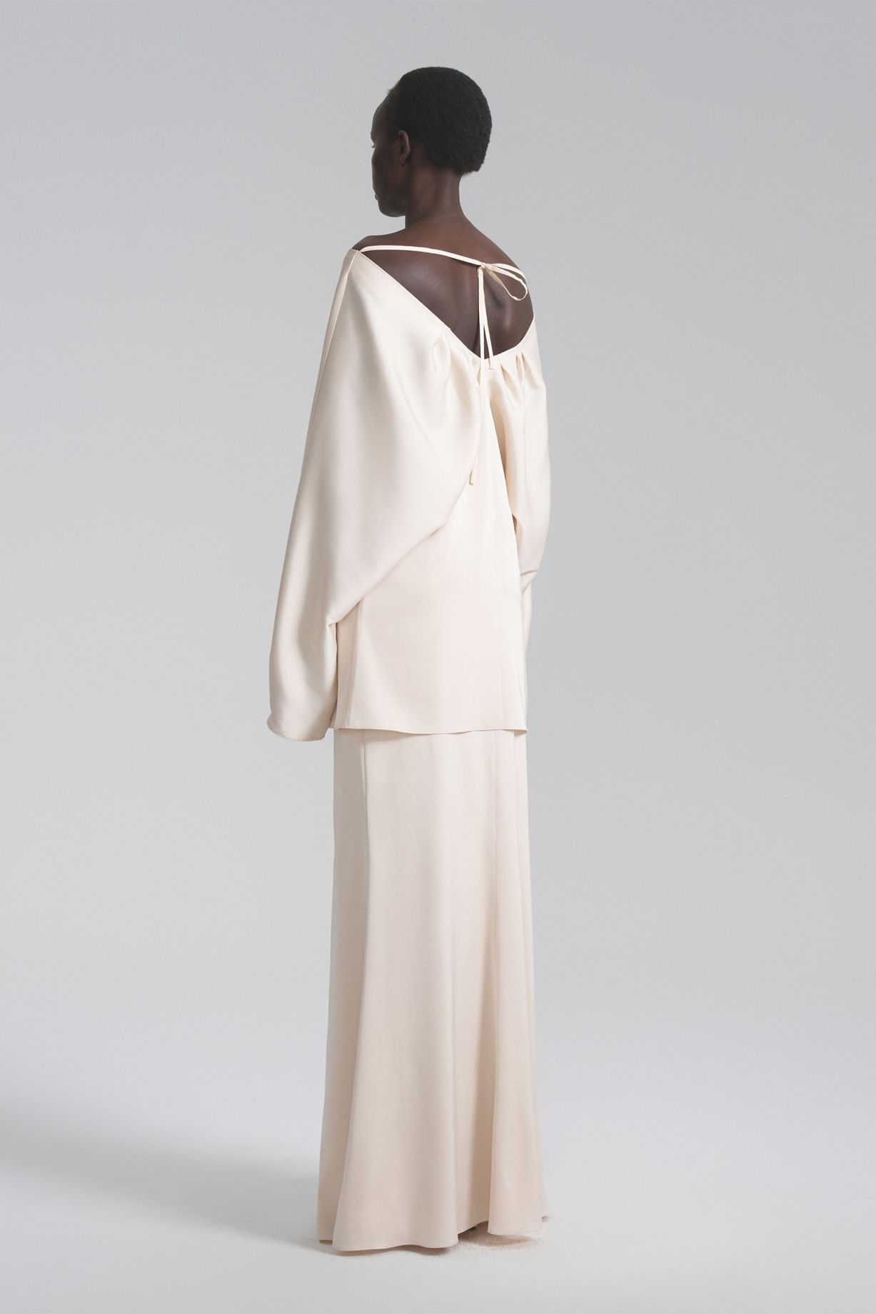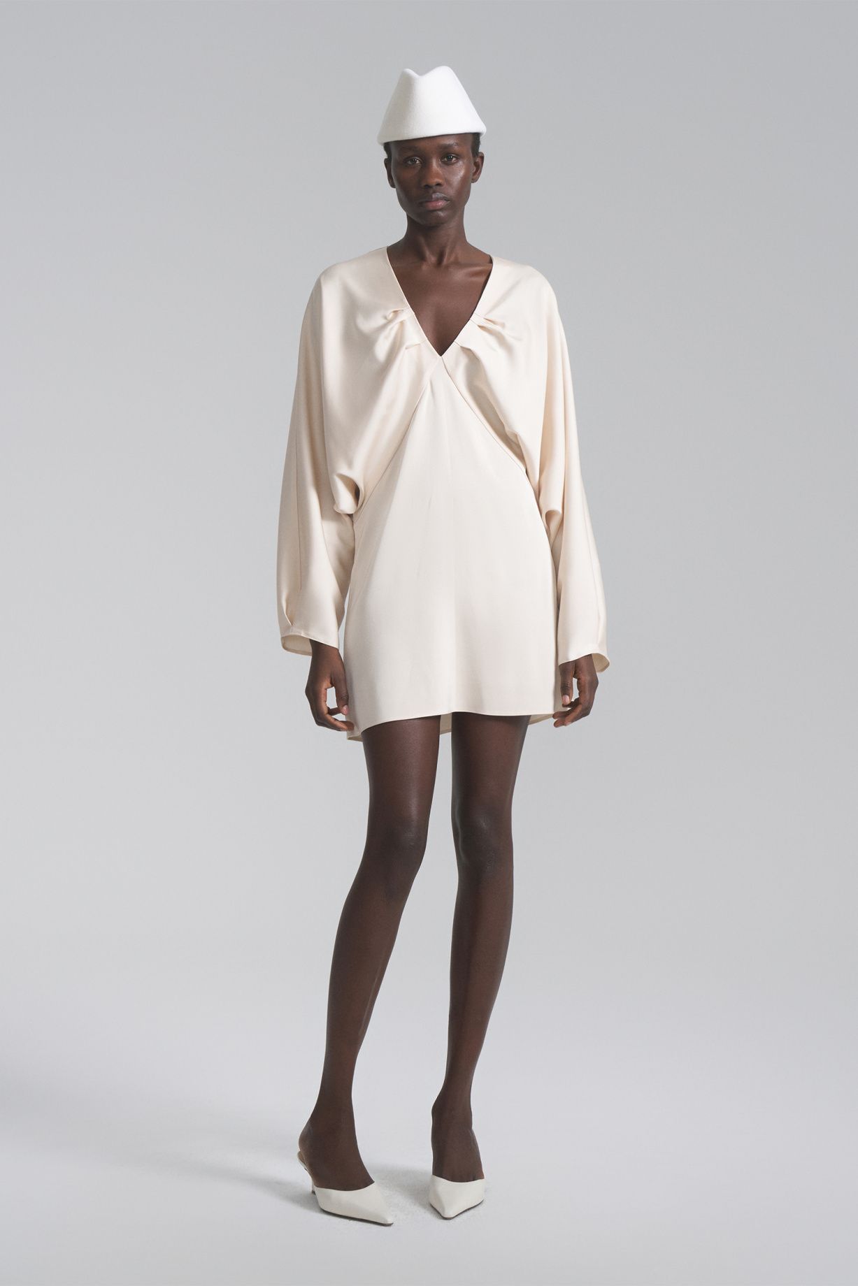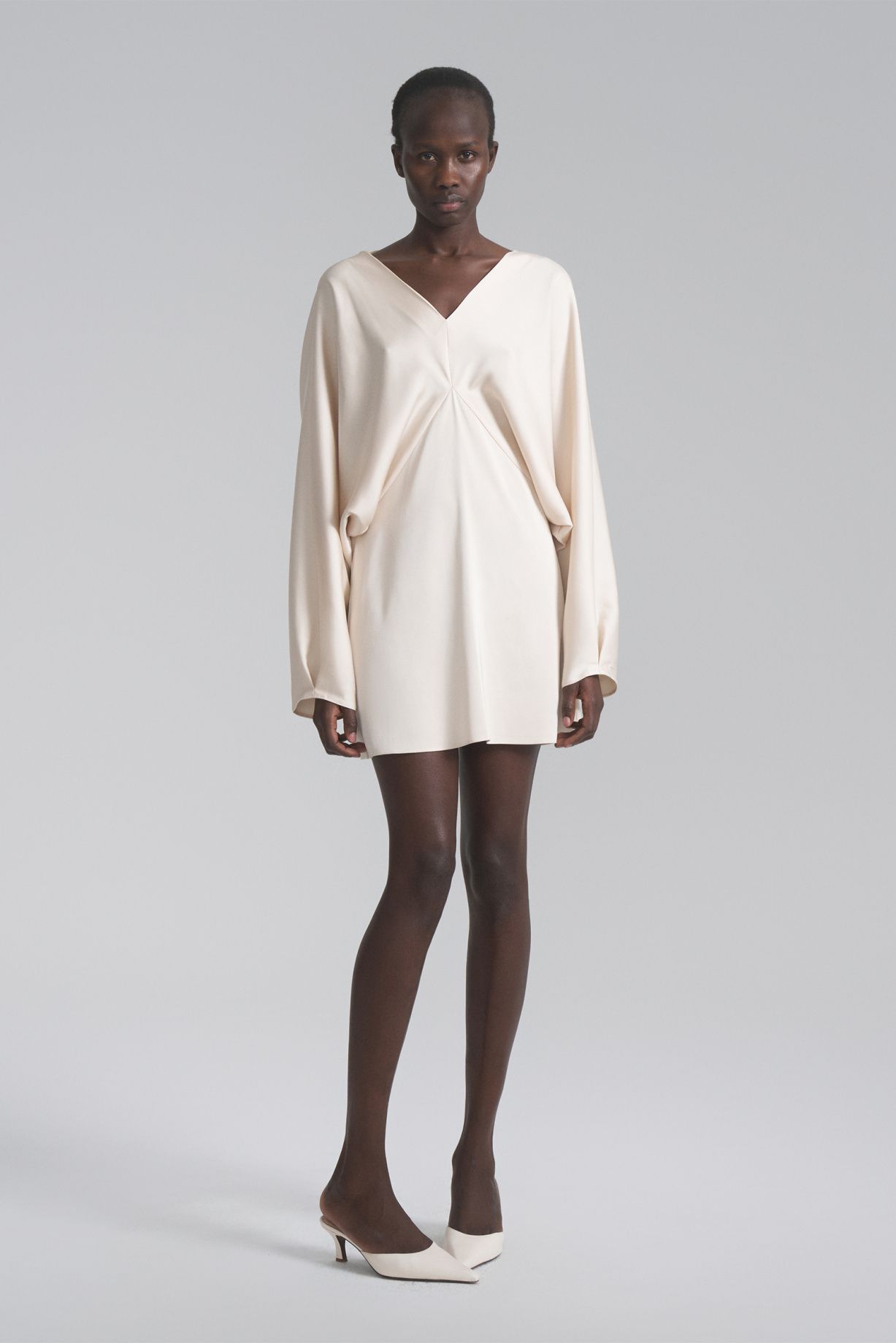 Платье мини из натурального шелка ручной работы премиального качества свободная кроя, V-образный вырез с заложенными складками на груди и сзади, объемные рукава. Уникальный крой и завязки позволяют носить платье со спущенными плечами.Состав: 30% шелк, 70% вискоза