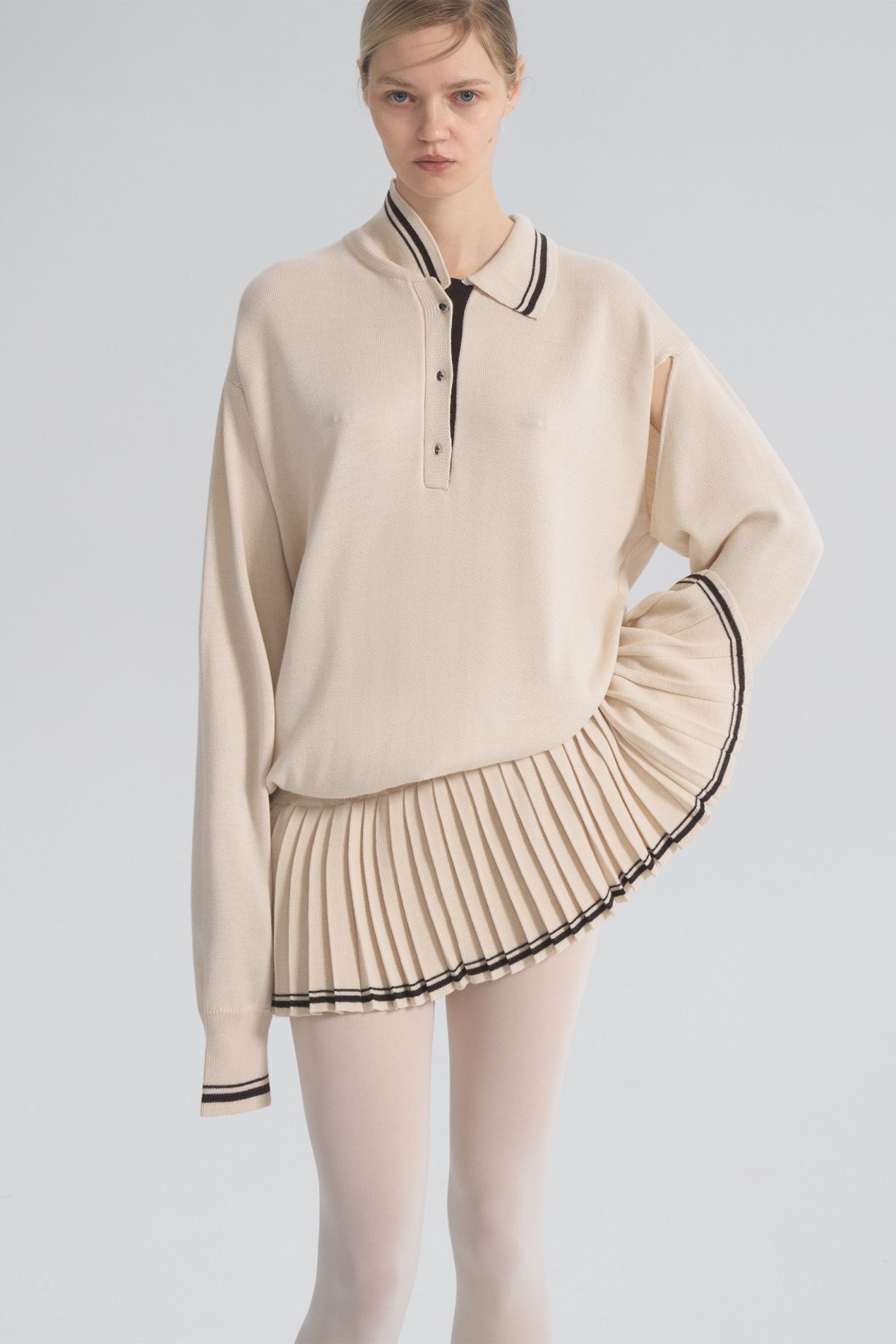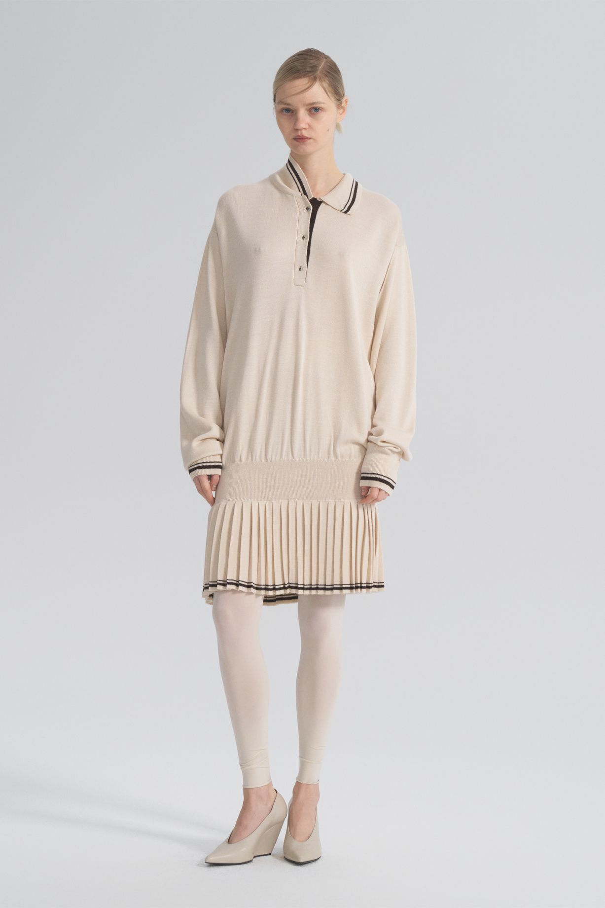 Платье Anime на кулиске с юбкой плиссе и воротником поло на пуговицах станет стильным и универсальным дополнением вашего гардероба. Мы создали рукава-трансформеры, которые вы можете стилизовать по своему усмотрению, как на фото. Вискоза обеспечивает мягкость и драпировку, а шерсть добавляет тепло и уют, создавая идеальное сочетание для любого времени года.Состав: 60% шерсть австралийского мериноса, 40 вискоза
