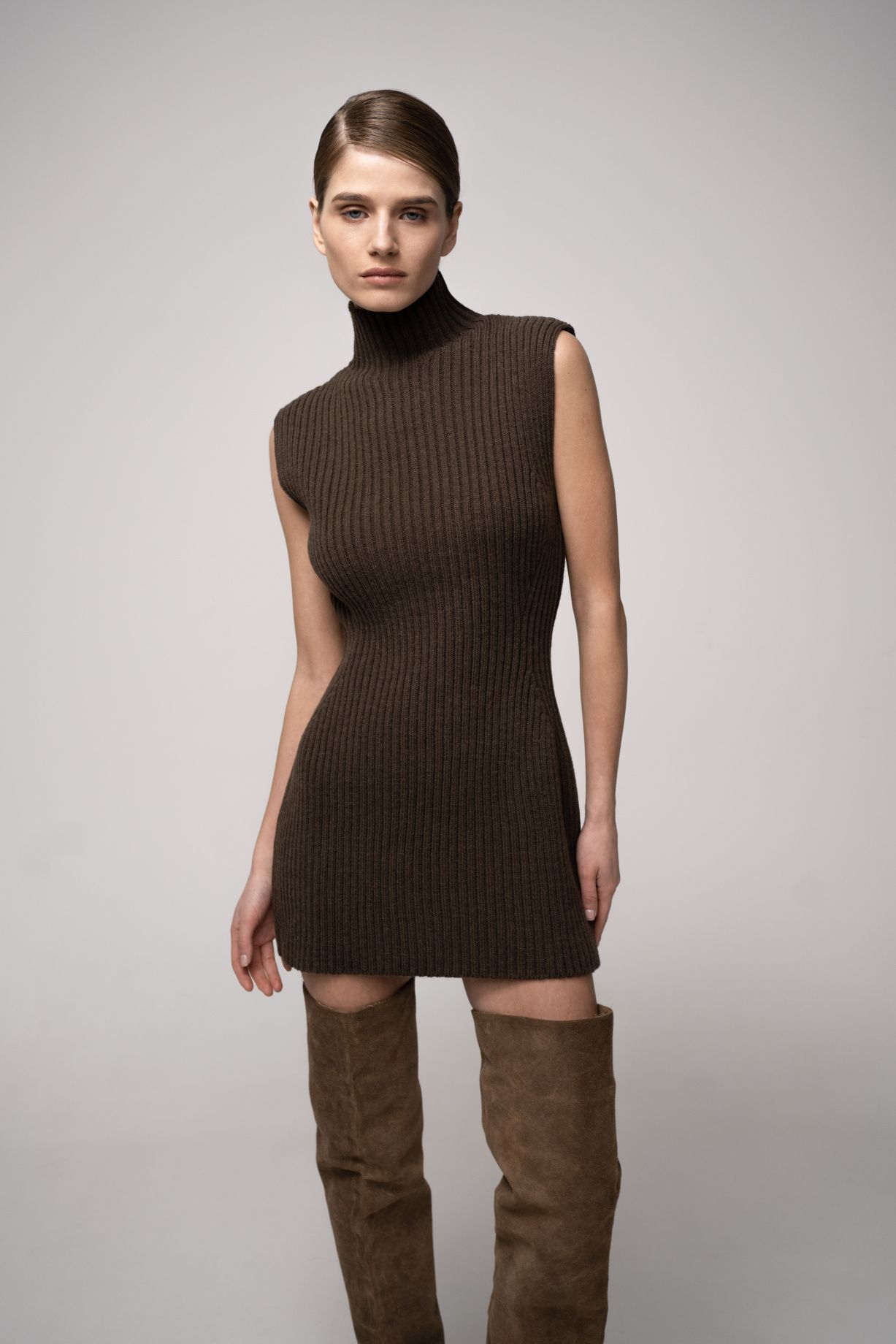 Платье-жилет с воротником-стойкой, сшитый из нежного итальянского трикотажа, станет стильным и уютным дополнением вашего гардероба. Шерсть австралийского мериноса обеспечивает невероятную мягкость и тепло, а вискоза добавляет драпировку и легкость.Состав: 30% австралийский меринос, 25% бэби альпака, 45% вискоза