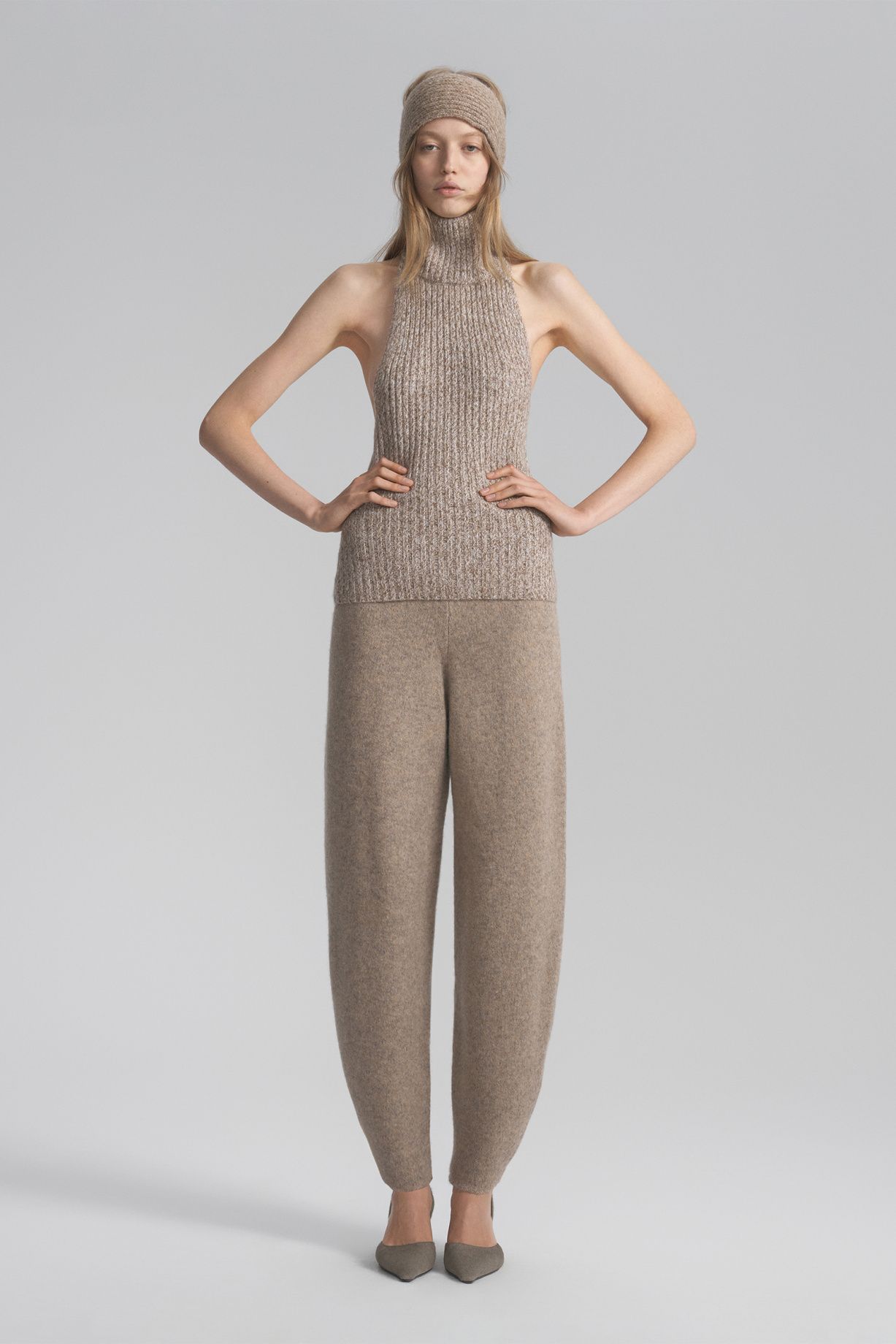 Топ выполнен из мягкой и тёплой шерсти альпака, приятно прилегающей к телу. Удлинённая форма, высокая двойная стойка и открытая спина создают лаконичный и выразительный акцент. Меланжевая пряжа даёт глубокий благородный оттенок и делает изделие универсальной базой для любого сезона.Состав: 30% альпака 60% шерсть 10% нейлон