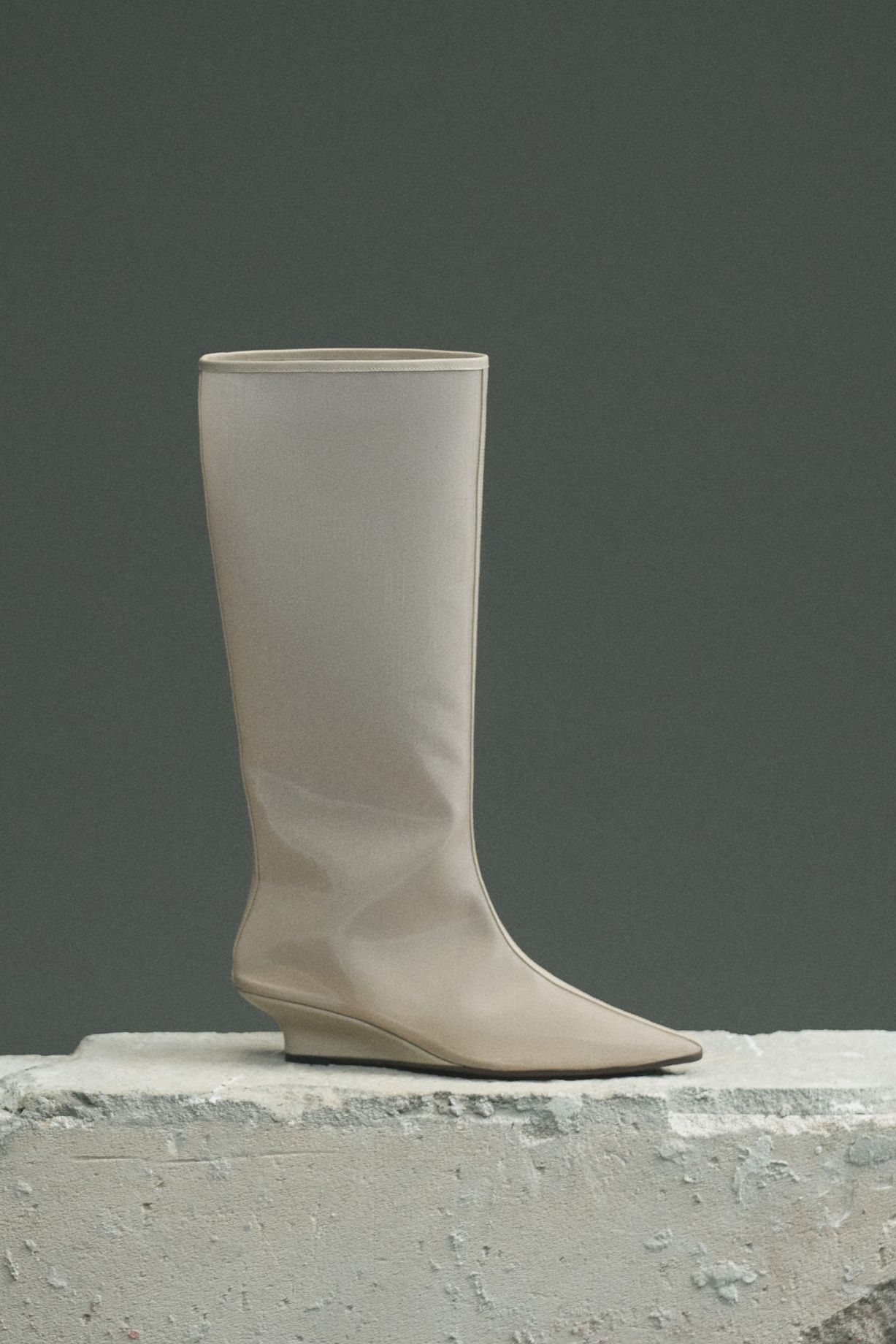 Летние сапоги Kaia выполнены из полупрозрачного сетчатого материала, имитирующий шелковую органзу, с окантовкой из натуральной кожи. На аккуратной танкетке- Чистка мягкой щеткой или салфеткойСостав: Материал верхней части нейлон и коровья кожа, стелька выполнены из натуральной овечьей кожи, подошва 100% резина