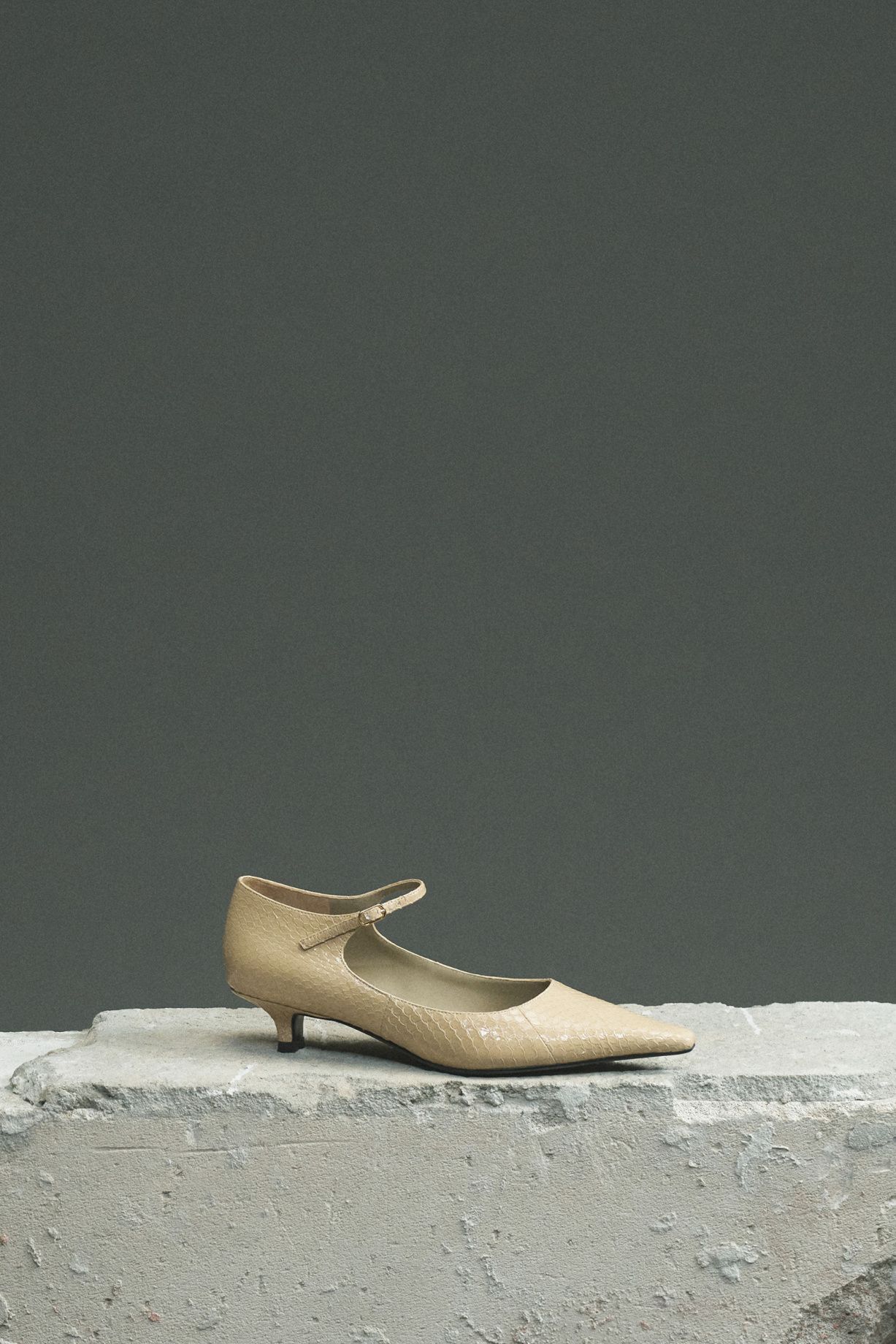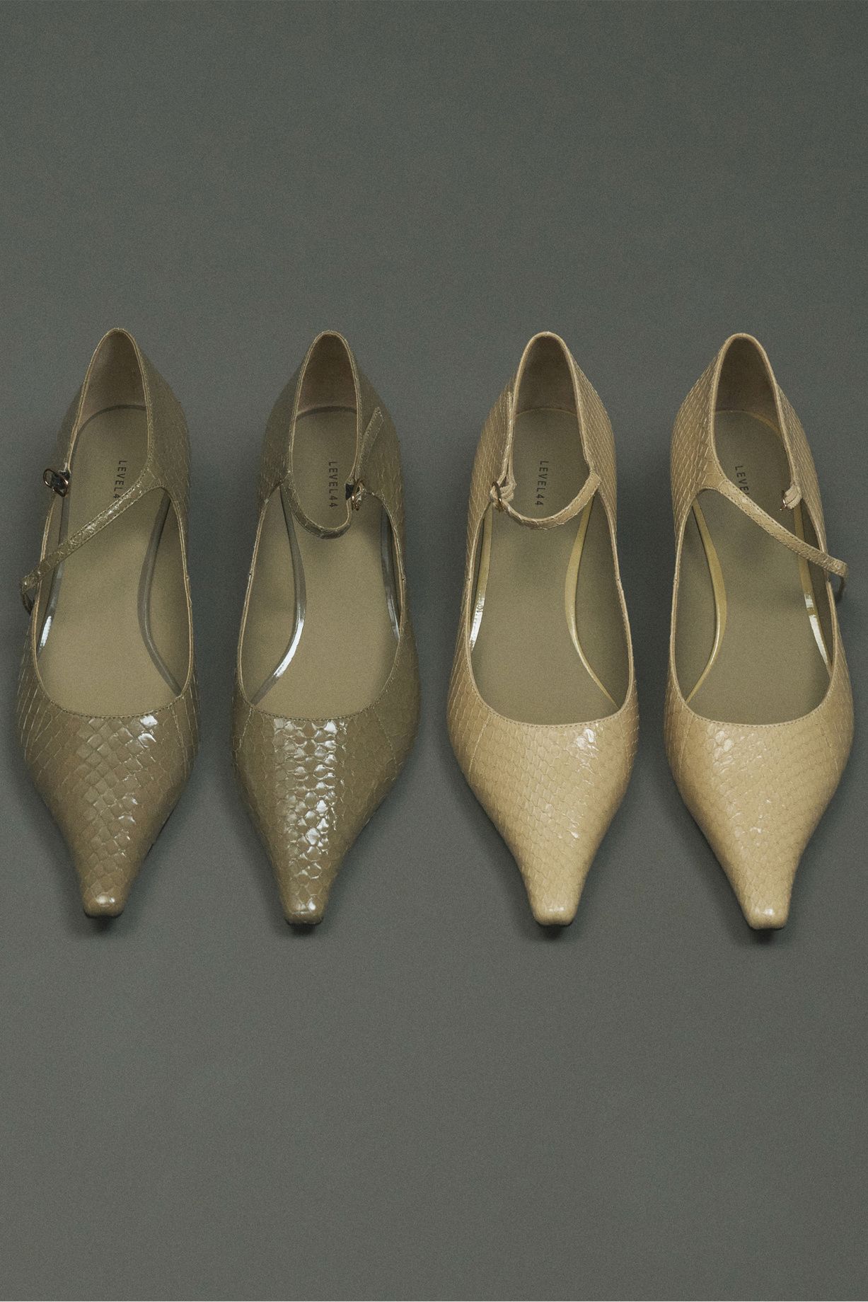 Туфли Twiggy на низком каблуке из экзотической кожи питона ручной работы с удобной застежкой вокруг щиколоткиСостав: Материал верхней части бежевая змеиная кожа, стелька выполнены из натуральной овечьей кожи, подошва 100% резина