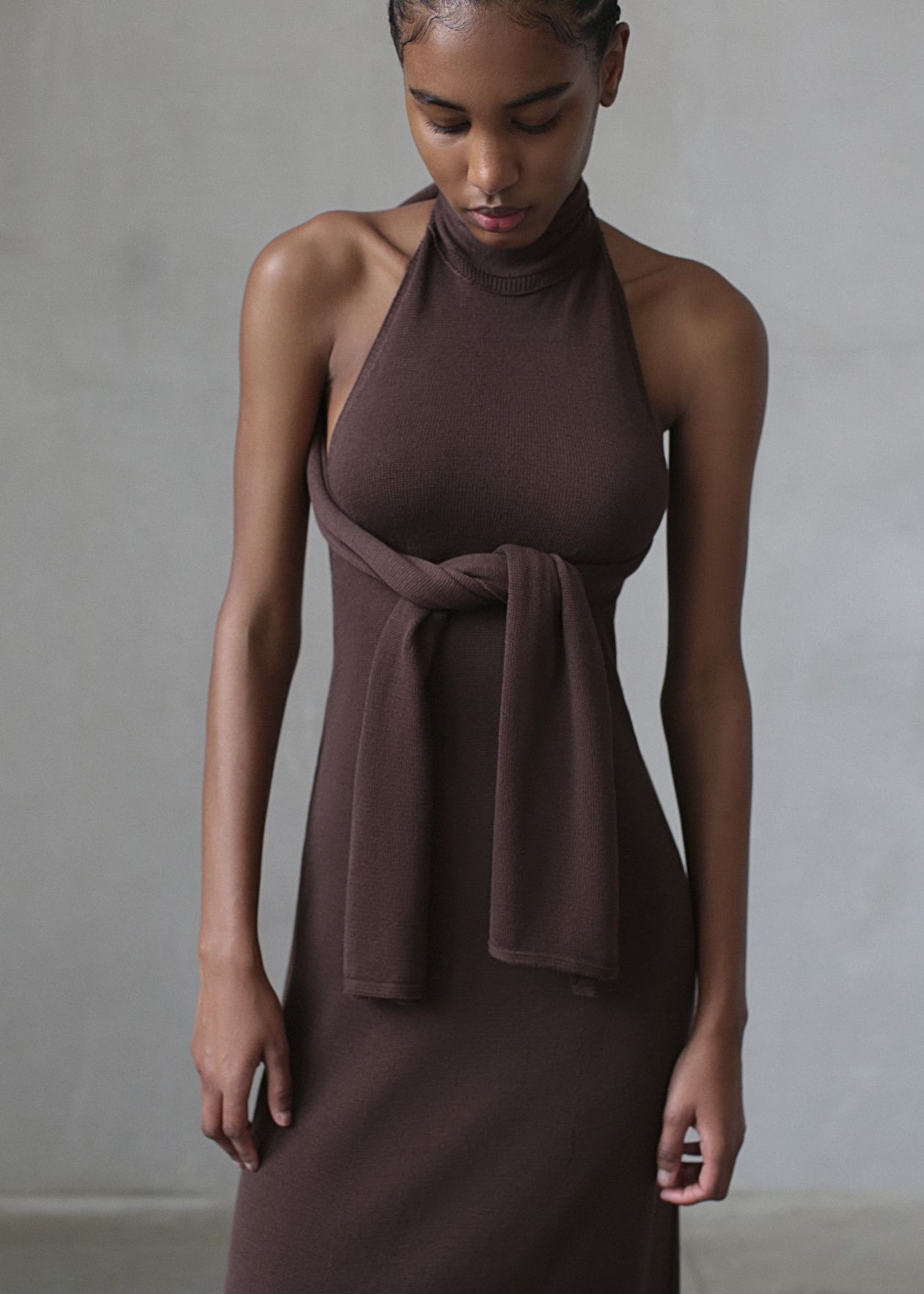 Длина макси, открытая спина и высокий облегающий вырез придают платью женственности и изысканности. Шарф придает платью элегантности и делает его идеальным для особых случаев и вечерних выходов. Оформите, как на фото, или носите без него. Мы выбрали тонкий удобный трикотаж, хлопок - для воздухопроницаемости и долговечности, а вискоза - для мягкости и драпировки.Состав: 60% хлопок, 40% вискоза