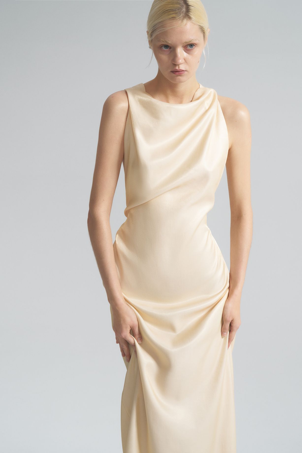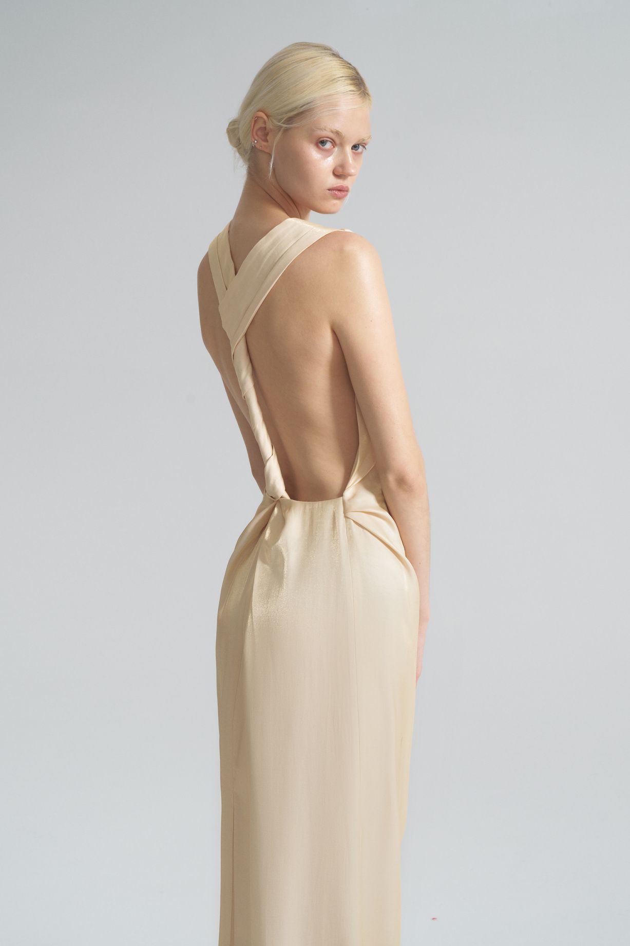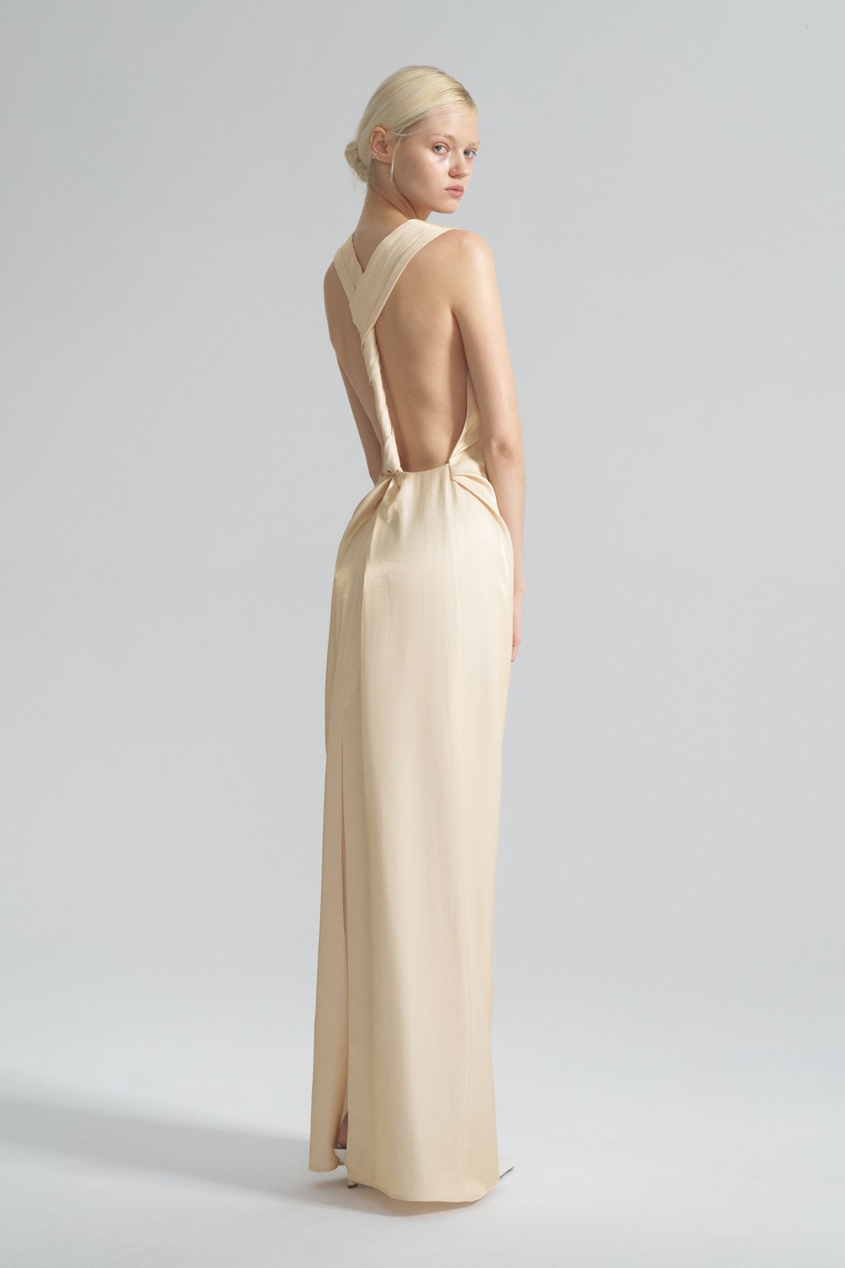 Платье с открытой спиной, выполнено из высококачественного материала, красивыми бретелями на спине, разрезом по бокам.Состав: 70% вискоза, 20% хлопок, 10% дакрон
