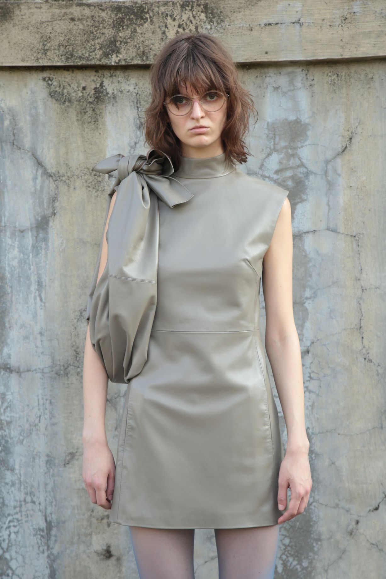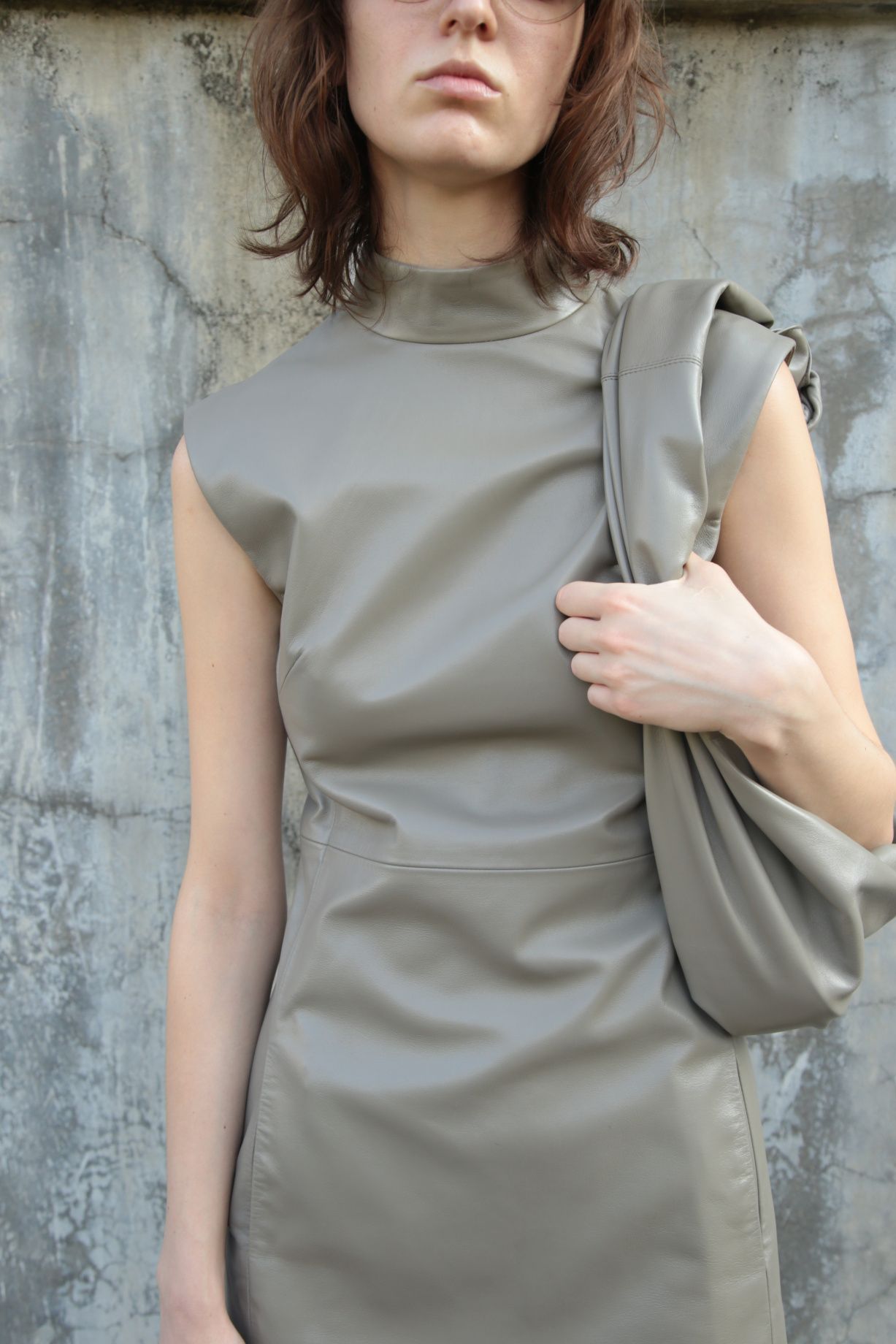 Мини-платье из мягкой натуральной кожи. Приталенный силуэт, чистый крой без излишних деталей. Строгая линия горловины, плотное прилегание по фигуре и длина мини. Материал подчёркивает форму, не сковывая движений.