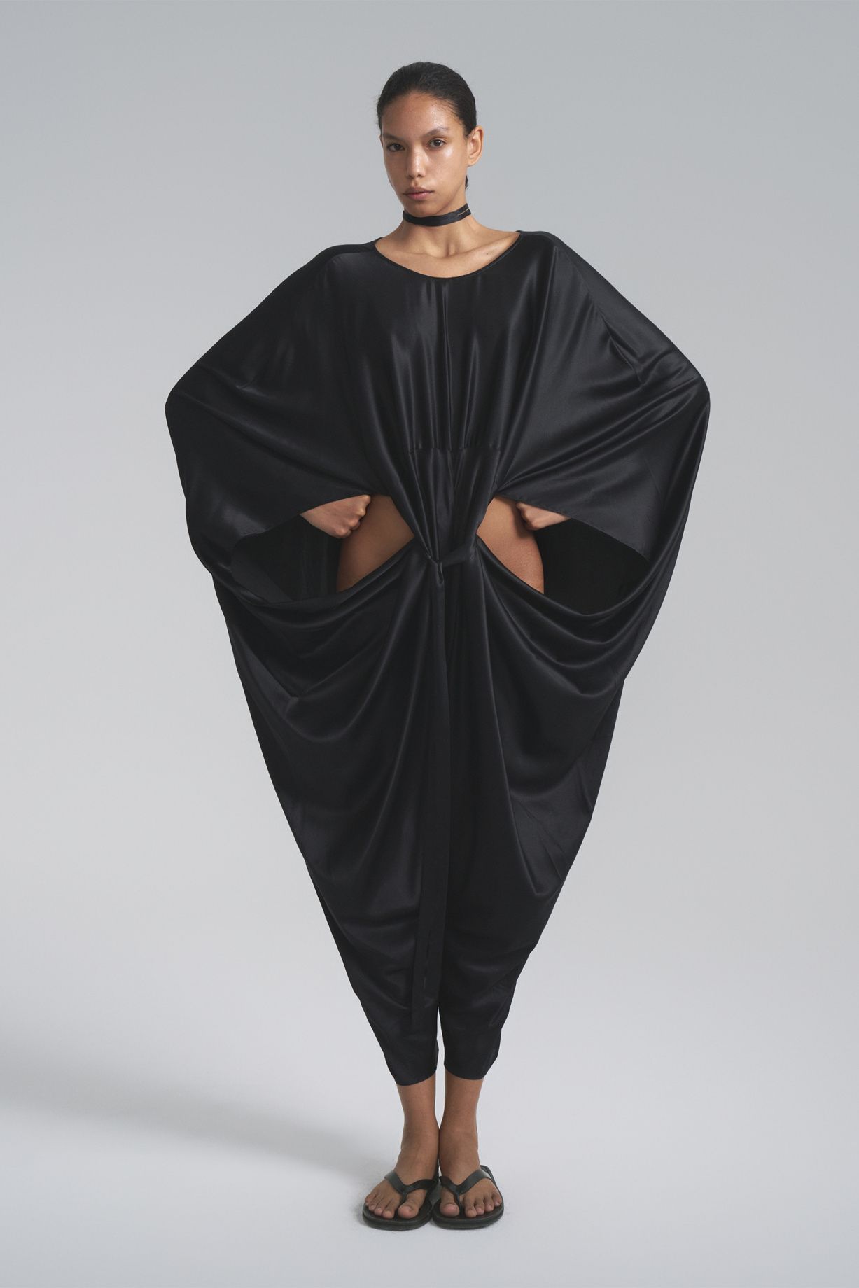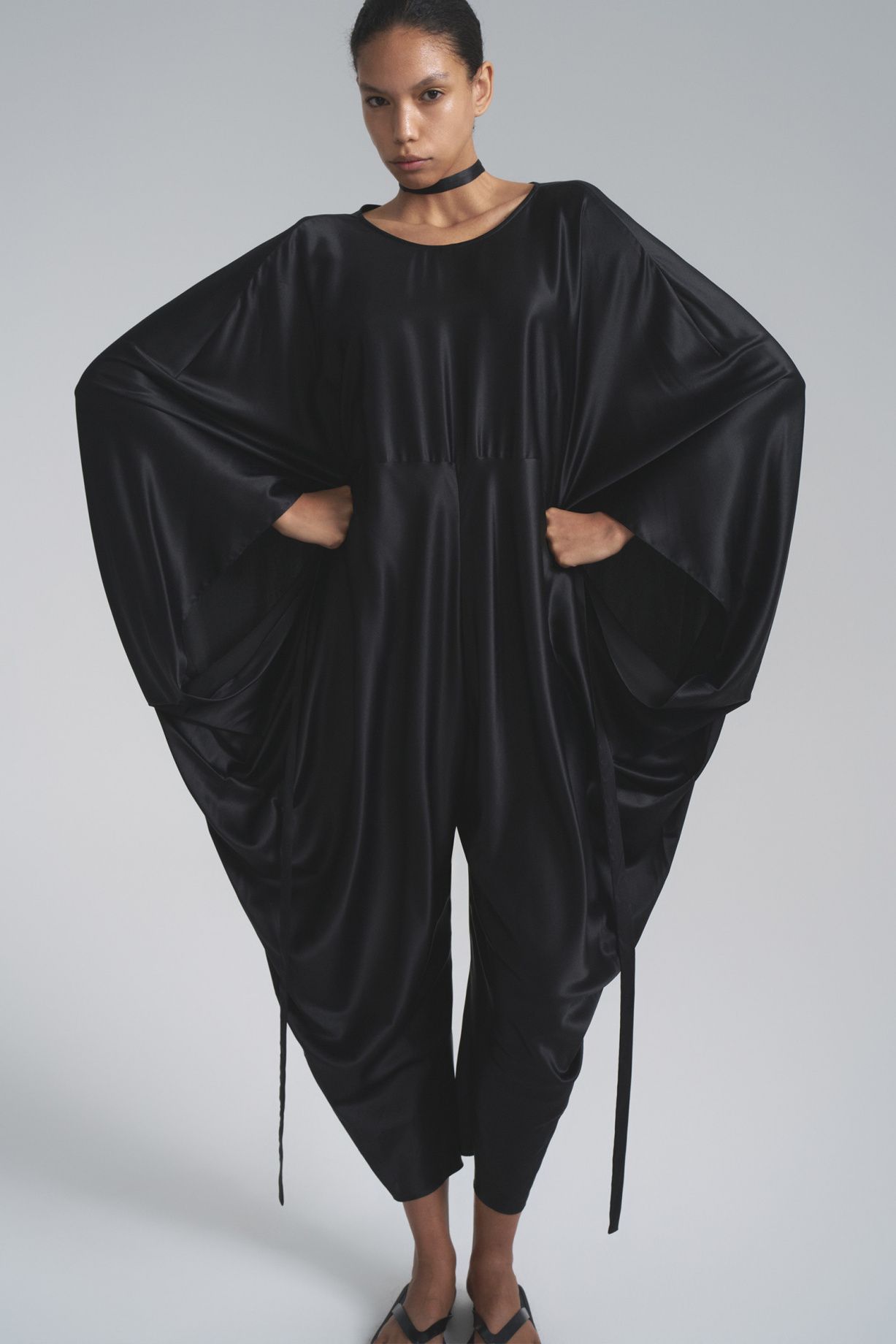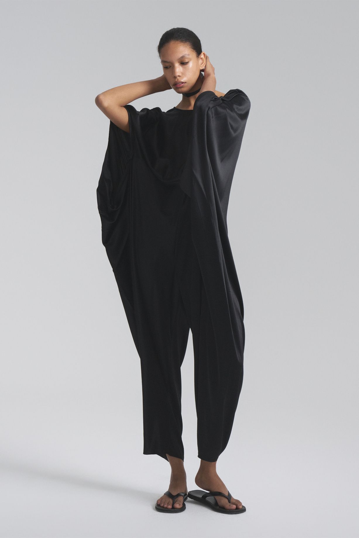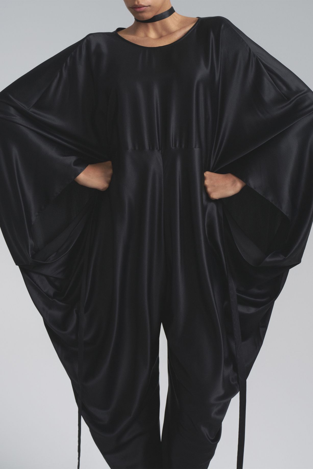Комбинезон кокон с глубоким вырезом на спине из натурального шелка и уникальным дизайном изделия предполагает различные варианты стилизацииСостав: 100% шелк