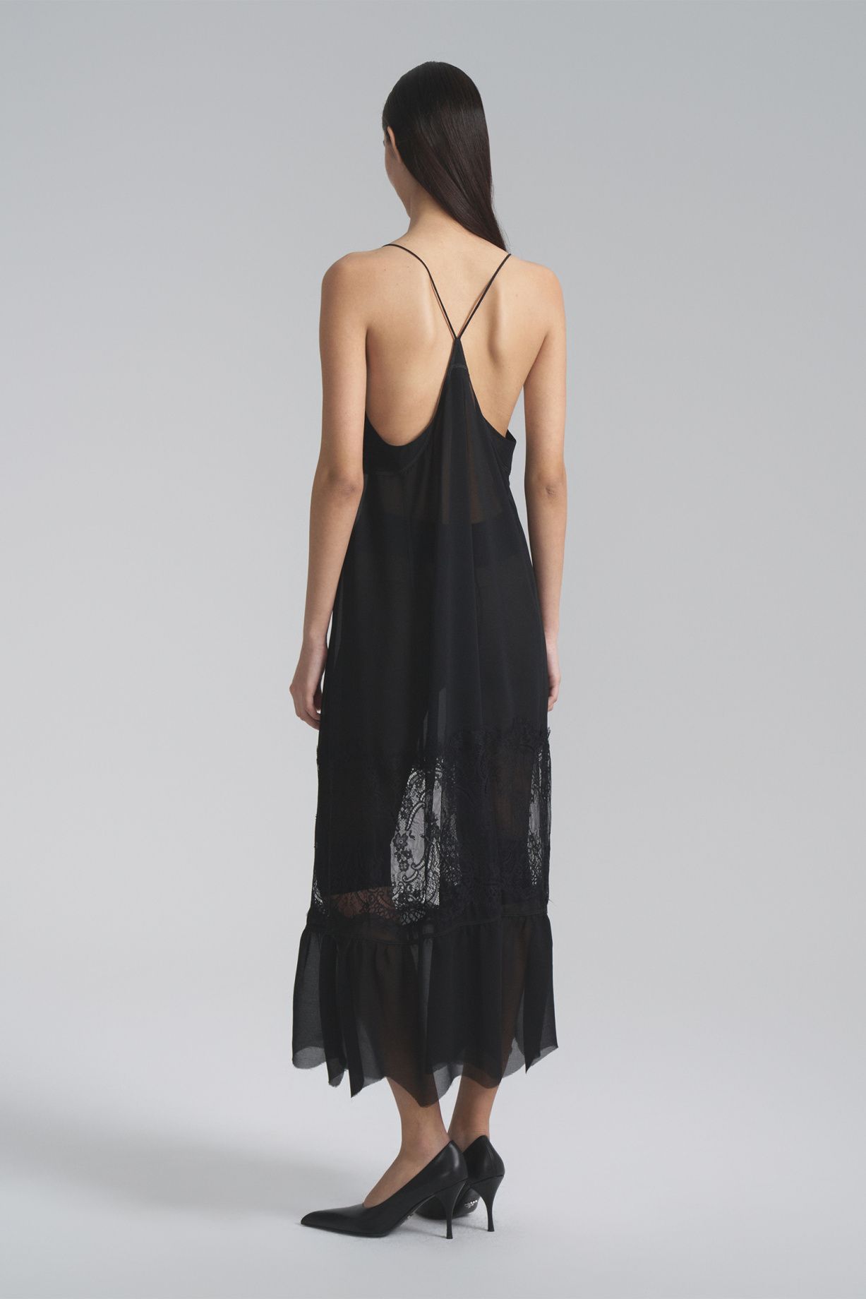 Легкое платье-комбинация А-силуэта, с отделкой из английского кружева ручной работы , с изящными бретелями.Состав: Шелк 20%, вискоза 50%, нейлон 30%