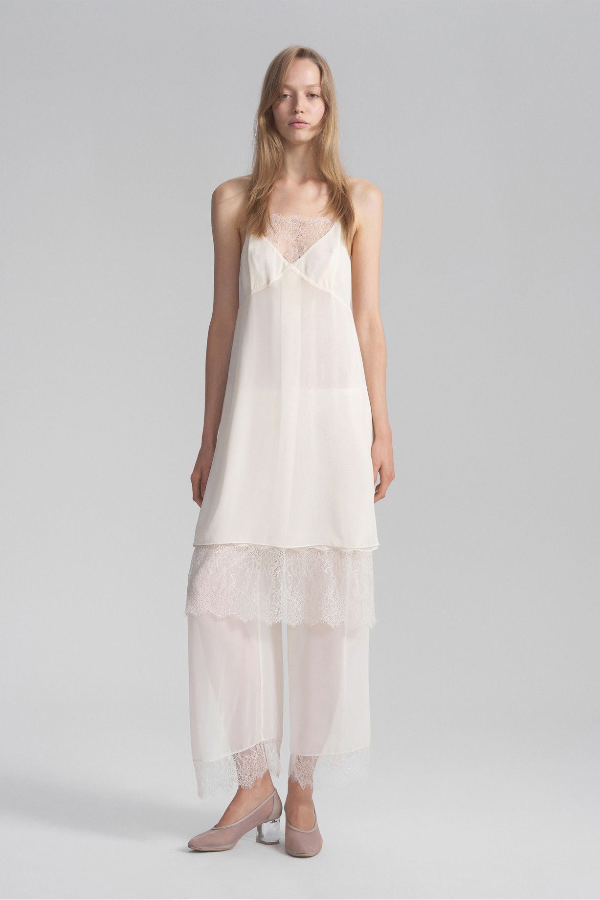 Воздушное платье-комбинация А-силуэта с отделкой из кружева по краю и изящными бретелямиСостав: Шелк 20%, вискоза 50%, нейлон 30%