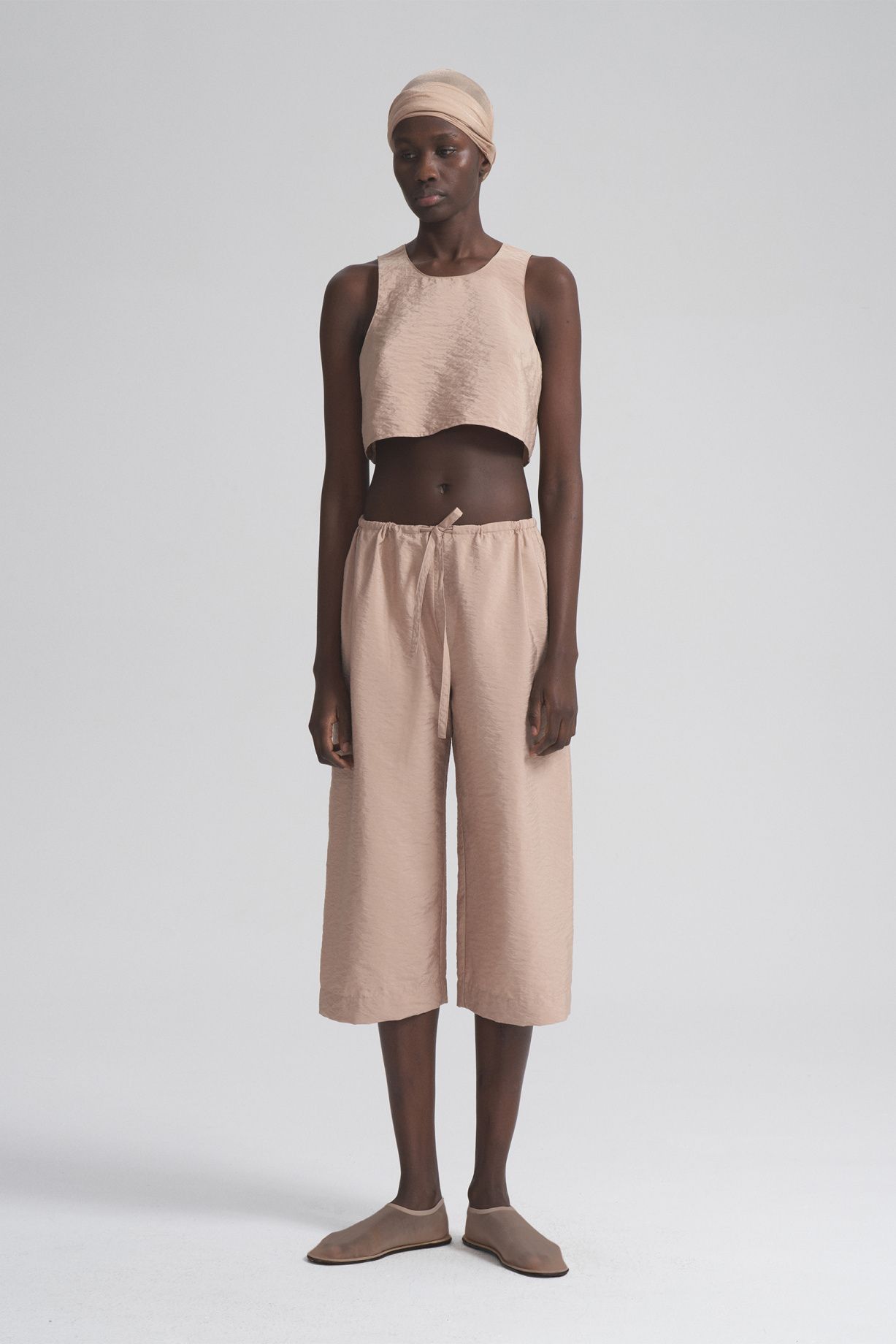 Кюлоты на кулиске из ткани с эффектом мятой ткани, с узким цельнокроенным поясом и кулиской, без бокового шва.Состав: 60% вискоза, 20% хлопок, 20% дакрон