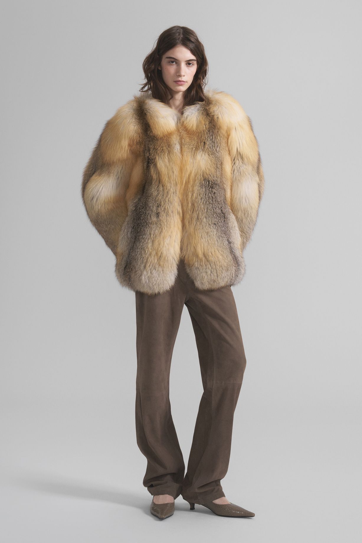 Шуба из натурального меха лисы, которая сочетает в себе роскошь, тепло и безупречный крой. Мех густой, длинный, с мягким блеском и насыщенной текстурой. Каждое изделие уникально благодаря неповторимому рисунку меха. Карманы аккуратно вписаны в крой, подчёркивая лаконичность модели.